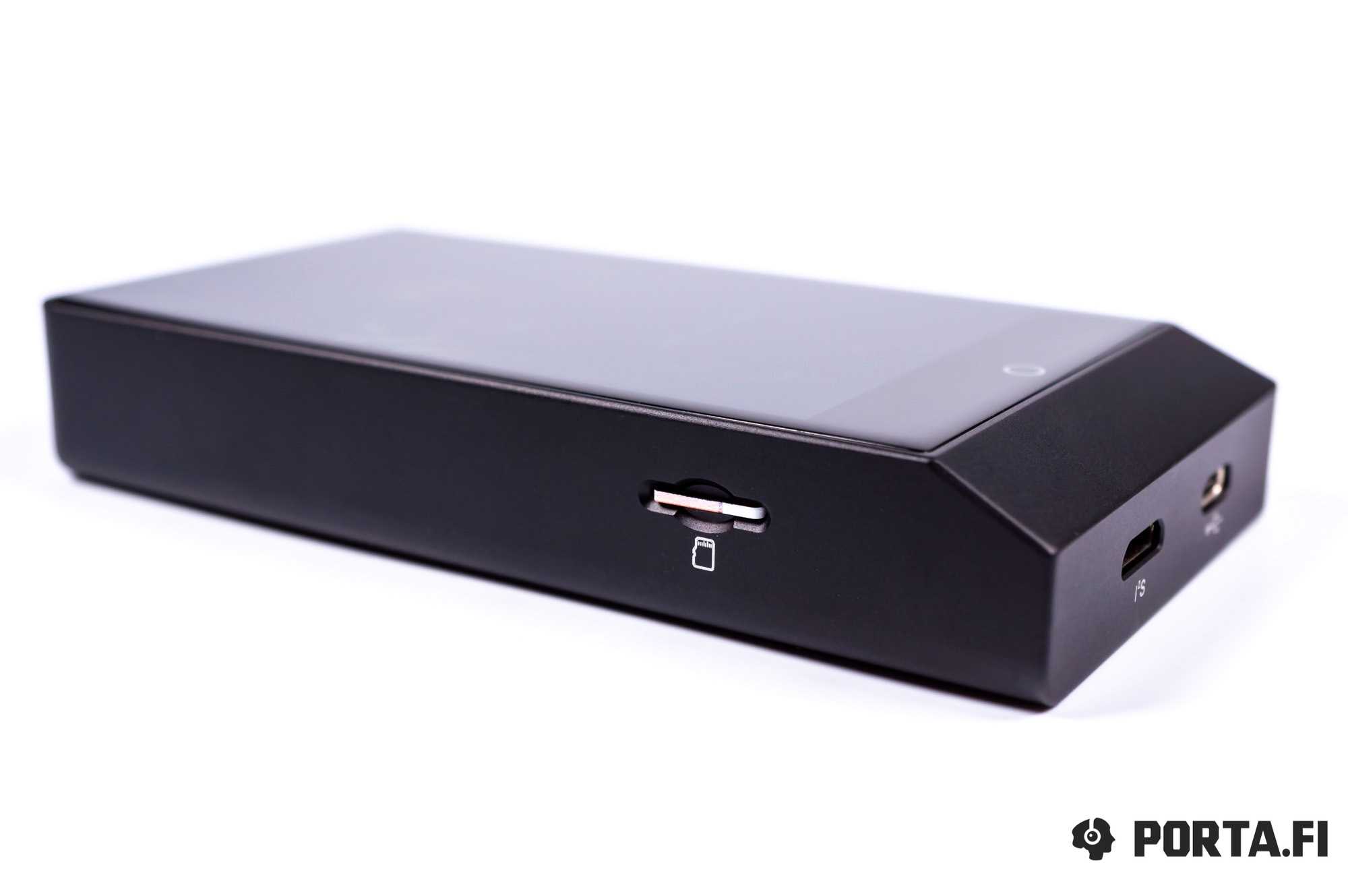 - Приятный дизайн и надёжная сборка. Плеер выглядит солидно. Эргономика хорошая, кнопки и разъёмы расположены удобно и работают хорошо. Экран качественный, не «слепнет» на солнце. Сборка качественная, придраться не к чему: корпус металлический, выглядит прочно. Дисплей можно прикрыть комплектной защитой.