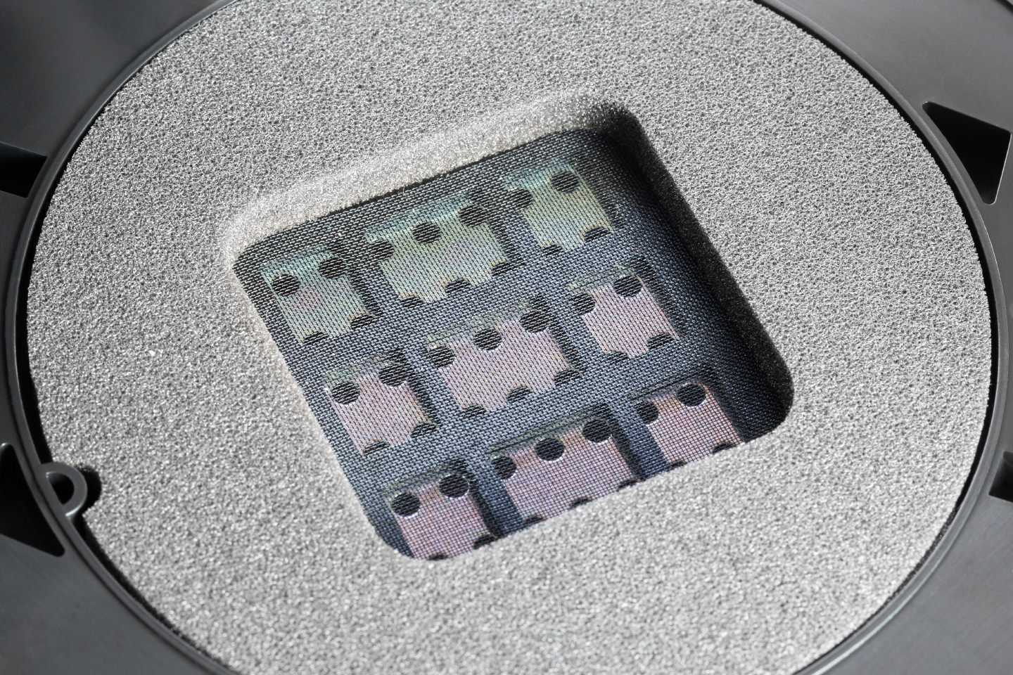 Под амбушюрами располагаются поролоновые вставки. Форма и размер квадратных вырезов соответствуют рабочей площади планарных излучателей