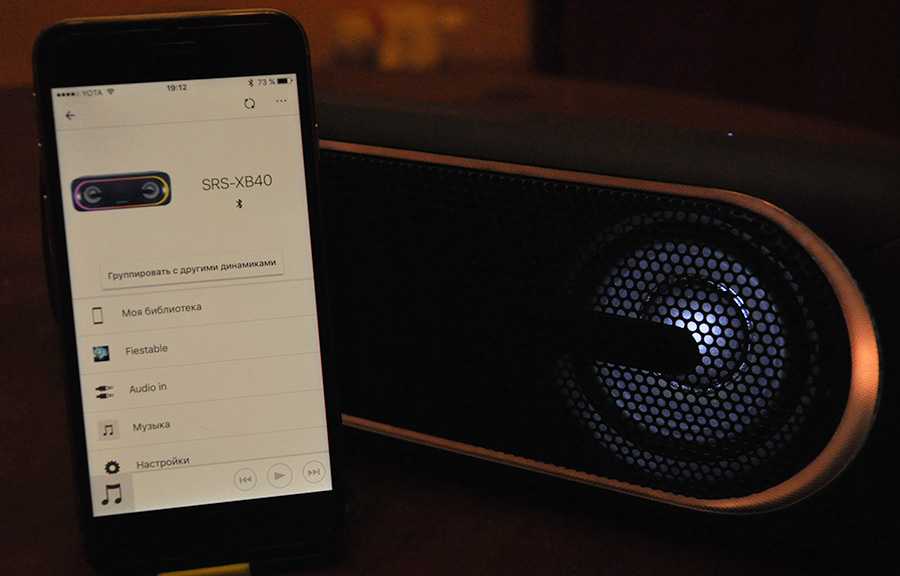 Но нет худо без добра, Music Center позволяет гибко настраивать Sony SRS-XB40 под ваши предпочтения. В распоряжении пользователя настройка светодиодов, звуковых эффектов в дополнительном приложении Fiestable. Кроме того, существует возможность объединения до 10 колонок в одну систему.