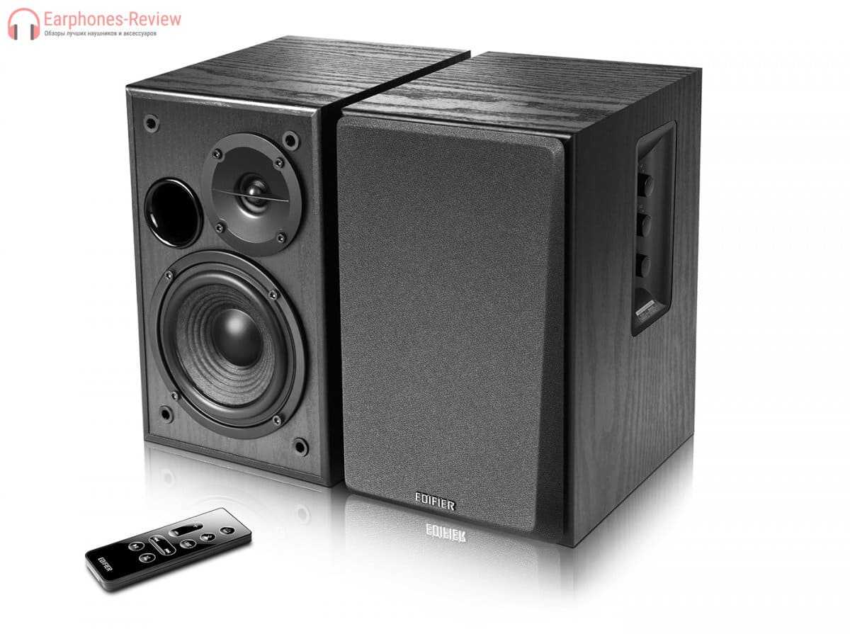Почетное второе место в ТОПе лучших колонок для дома занимает полочная двухполосная акустическая система от лидера китайских производителей. Это стильная и недорогая модель в корпусе из МДФ классического черного цвета на упругих ножках-таблетках. Управление предусмотрено на боковой панели вместе со светодиодным индикатором и включает регулировки усиления, громкости звука, микрофона.