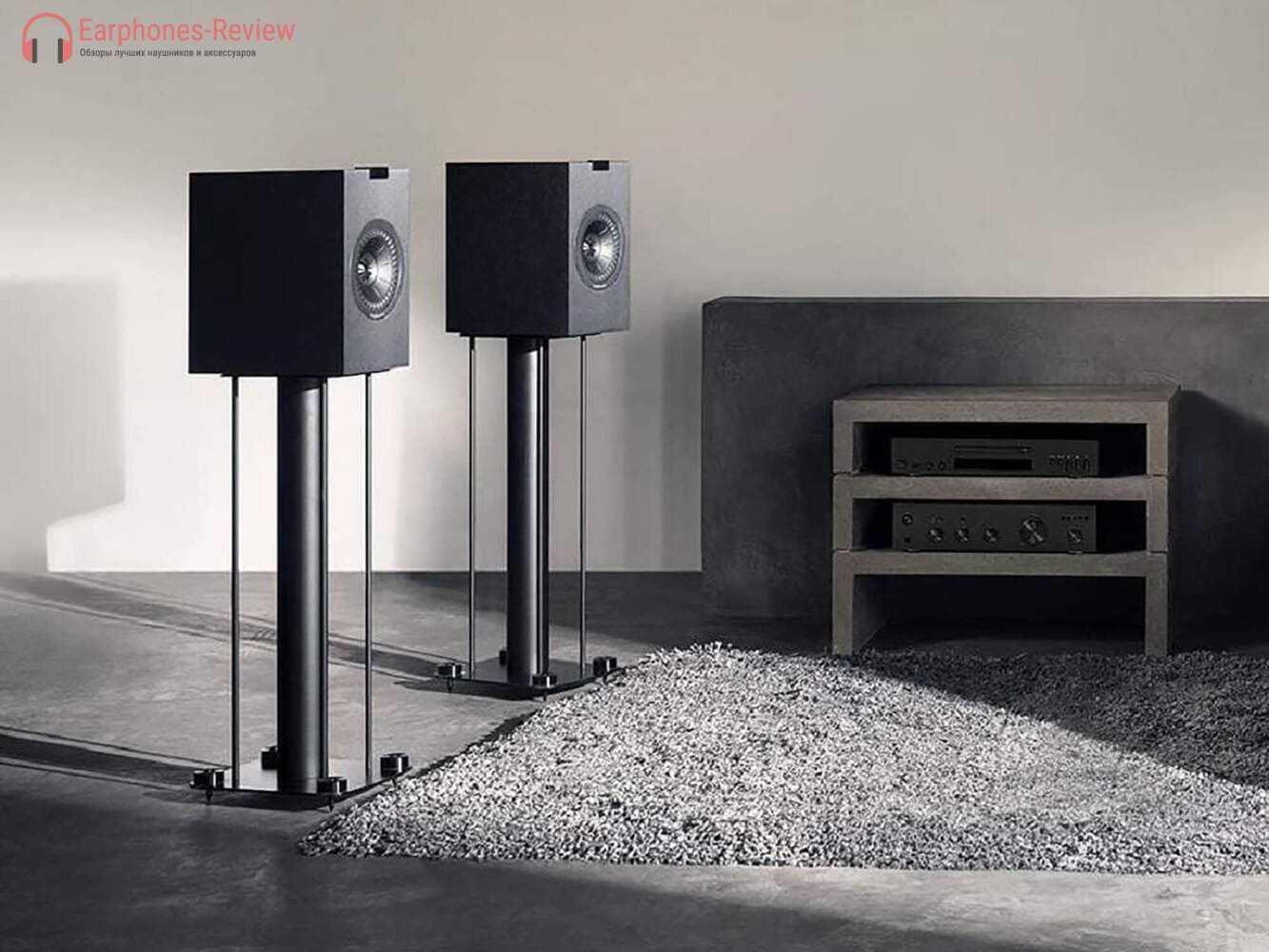 Возглавляет рейтинг лучших колонок для дома двухполосная полочная акустическая система с магнитным экраном от американского производителя. Корпус монитора со стенками толщиной 15 мм выполнен из МДФ в классическом матовом черном цвете, передняя панель декорирована пластиковой вставкой с глянцевым покрытием.