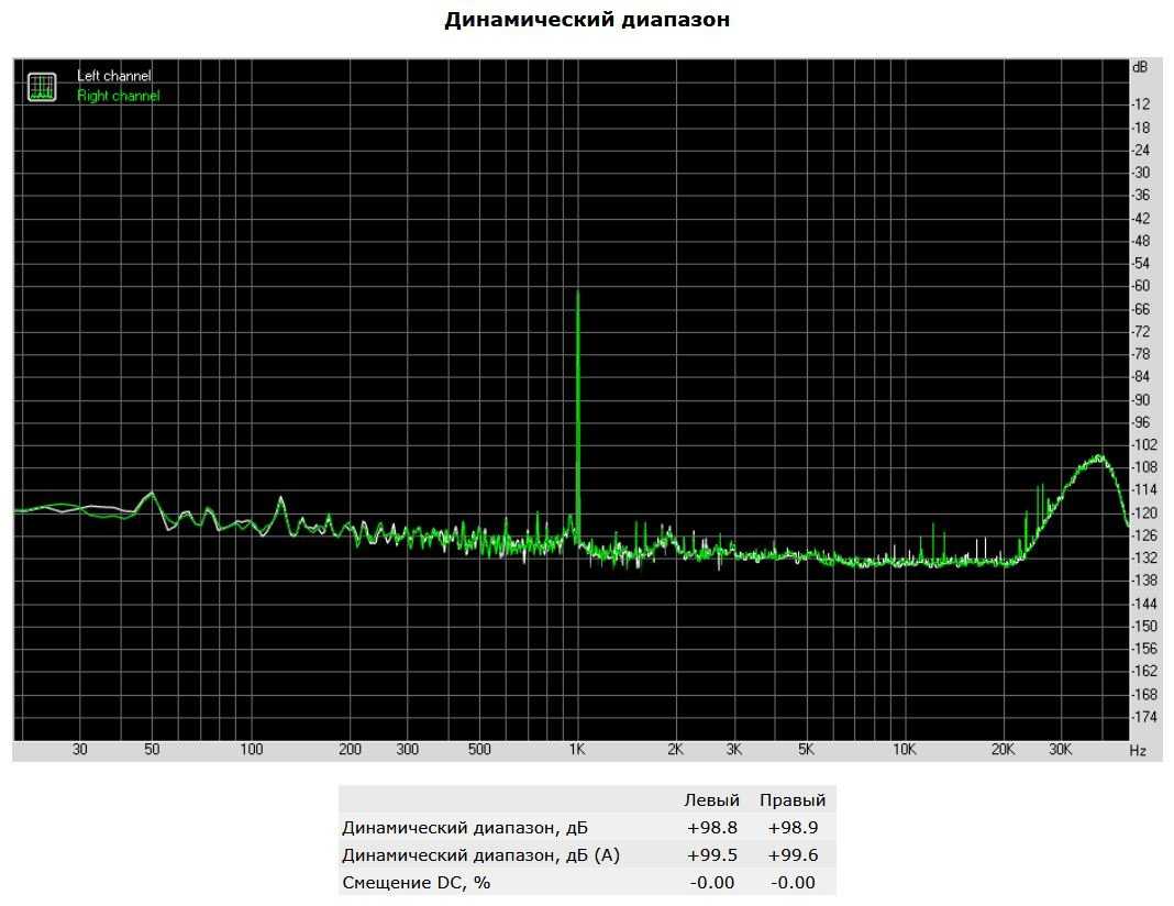 Звуковые характеристики аудиокарты измерялись в программе Right Mark Audio Analyzer 6.4.5. Настройки по умолчанию, изменялся только режим «один канал записи» или «два». Тесты прогонялись несколько раз при разных настройках уровня громкости и записи.