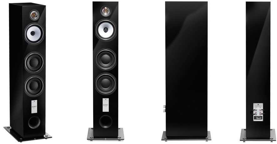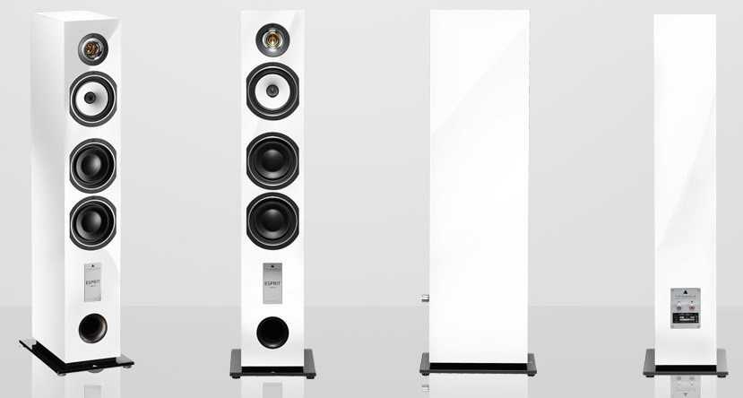Внутри кабинет скрепляется двумя горизонтальными стяжками и сплошной переборкой, отделяющий верхний отсек среднечастотника от бокса вуферов. Отсек СЧ динамика — закрытый, басовики акустически нагружены на передний фазоинверторный порт. На обратной панели размещен клеммный щиток с разъемами для двухкабельного подключения. Внизу колонки устанавливаются на постаменты SPEC (Single Point Energy Conduction), оптимизи-рованные для Esprit EX.