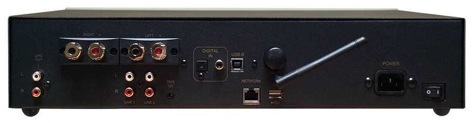 В блоке питания установлены три трансформатора Zarel и преобразователь Traco Power. Присутствуют 9 стабилизированных источников питания и полный набор цифровых входов, включая S/PDIF, балансный AES/EBU и асинхронный USB-порт. Выходы: линейный RCA, XLR, оптический, коаксиальный и гнездо для наушников. В комплект входит USB-донгл для беспроводного приема аудиосигнала.
