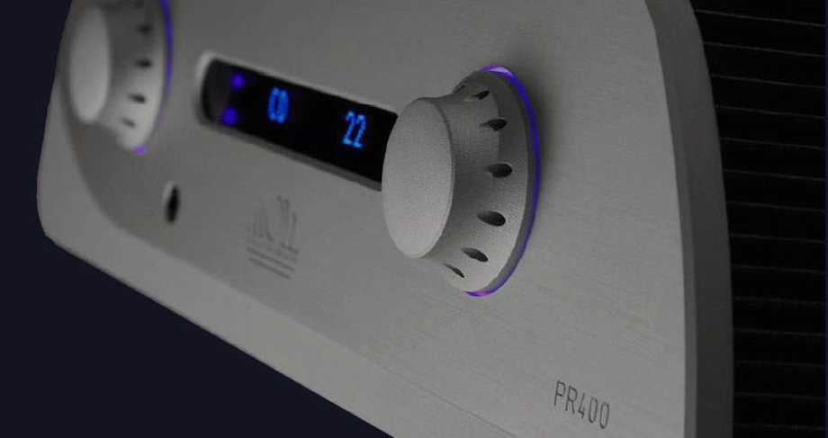 Предусилитель PR400 оснащен отключаемым дисплеем, схемотехникой «dual mono», работает в классе A и обладает полным комплектом входов и выходов, включая разъемы XLR и сквозной фиксированный вход. Питанием каждого канала занимается отдельный трансформатор. Модель можно использовать как ЦАП (на борту есть конвертер и USB-порт). Дополнительно устанавливается фонокорректор, плата для цифровой коммутации и даже модуль беспроводной связи.