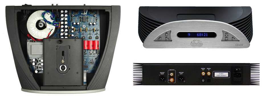 Девятикилограммовый CD-проигрыватель CD400 использует прецизионный привод с верхней загрузкой диска и подвеской для развязки с корпусом. Его тороидальный трансформатор оптимизирован для работы с аудиоцепями. На борту присутствуют восемь стабилизированных источников для раздельного питания функциональных контуров, пара конвертеров PCM1794 и широкий выбор разъемов для коммутации, среди которых есть балансный выход и цифровые входы для использования модели в качестве внешнего ЦАПа.