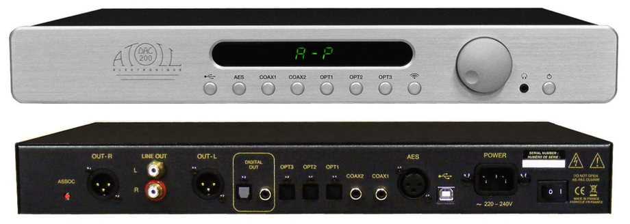 В линейку внешних ЦАПов Atoll входит DAC100 SE и его старший собрат DAC200, на разработку которого ушло 2 года. Модель получила полноразмерное стальное шасси, толстый алюминиевый фасад, эффективный конвертер Burr-Brown PCM1792 (24 бит/192 кГц) и может выполнять функции предусилителя. На лицевой панели имеется ручка громкости, кнопки прямого доступа к источникам и дисплей. Используются отборные комплектующие, включая аудиофильские конденсаторы MKP. Дискретные выходные каскады абсолютно симметричны и не имеют обратной связи.
