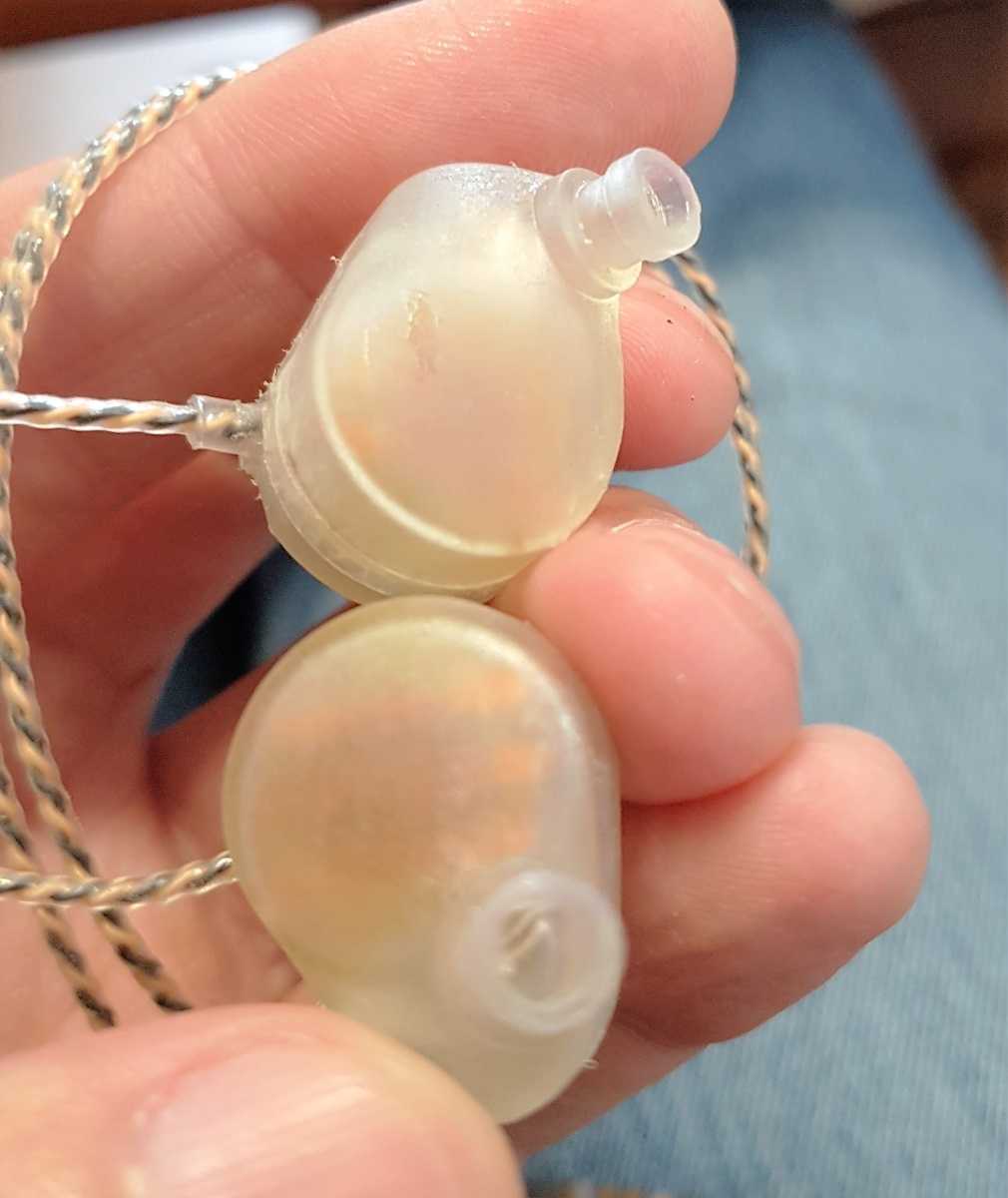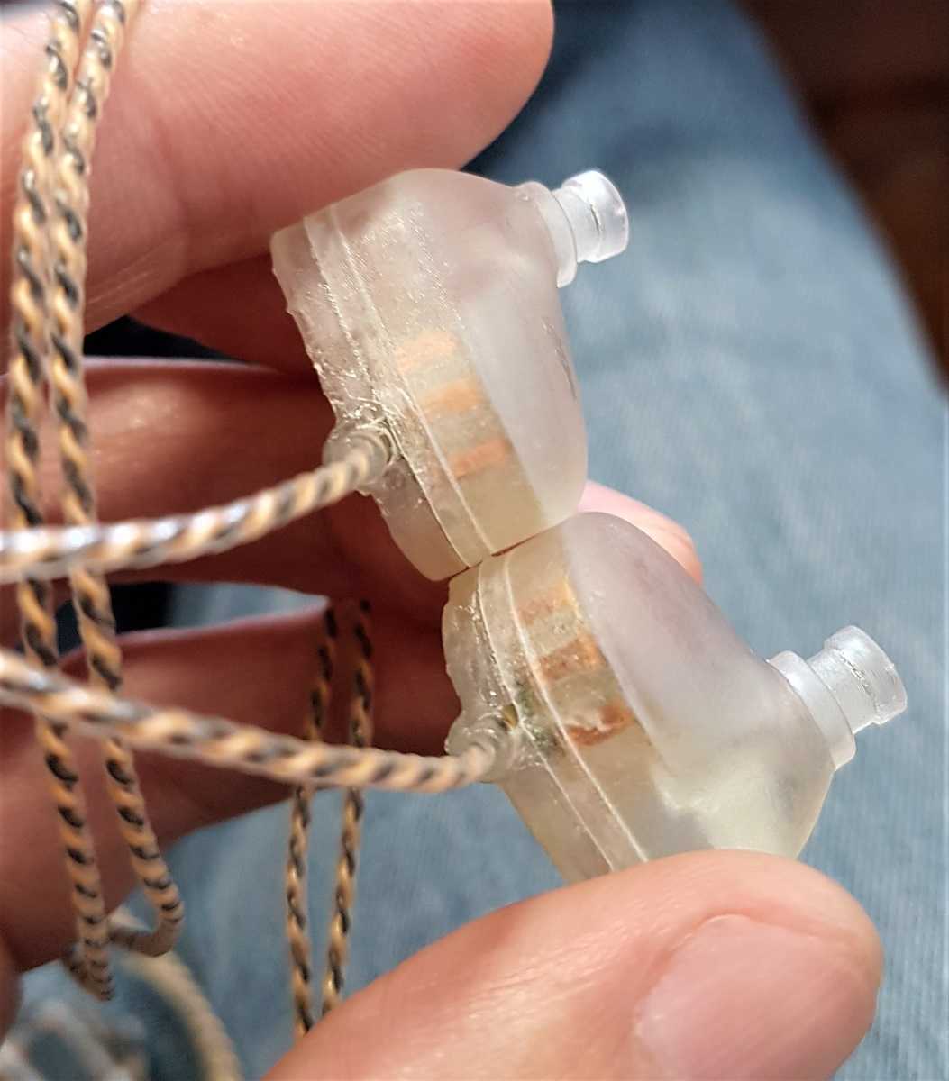 Выглядят ушки вполне прилично, скромно и без излишеств. Прозрачно-матовый пластиковый шелл сработан на 3D принтере, внутри, словно сквозь лед на замерзшей реке, проступает изодинамический драйвер. Форма наушников характерна для заушного ношения, но в этом случае их размер чуть большего обычного. Витой кабель качественный, сделан из посеребренной меди, его длина 1,5 метра, на конце — джек Neutrik 3,5 мм.