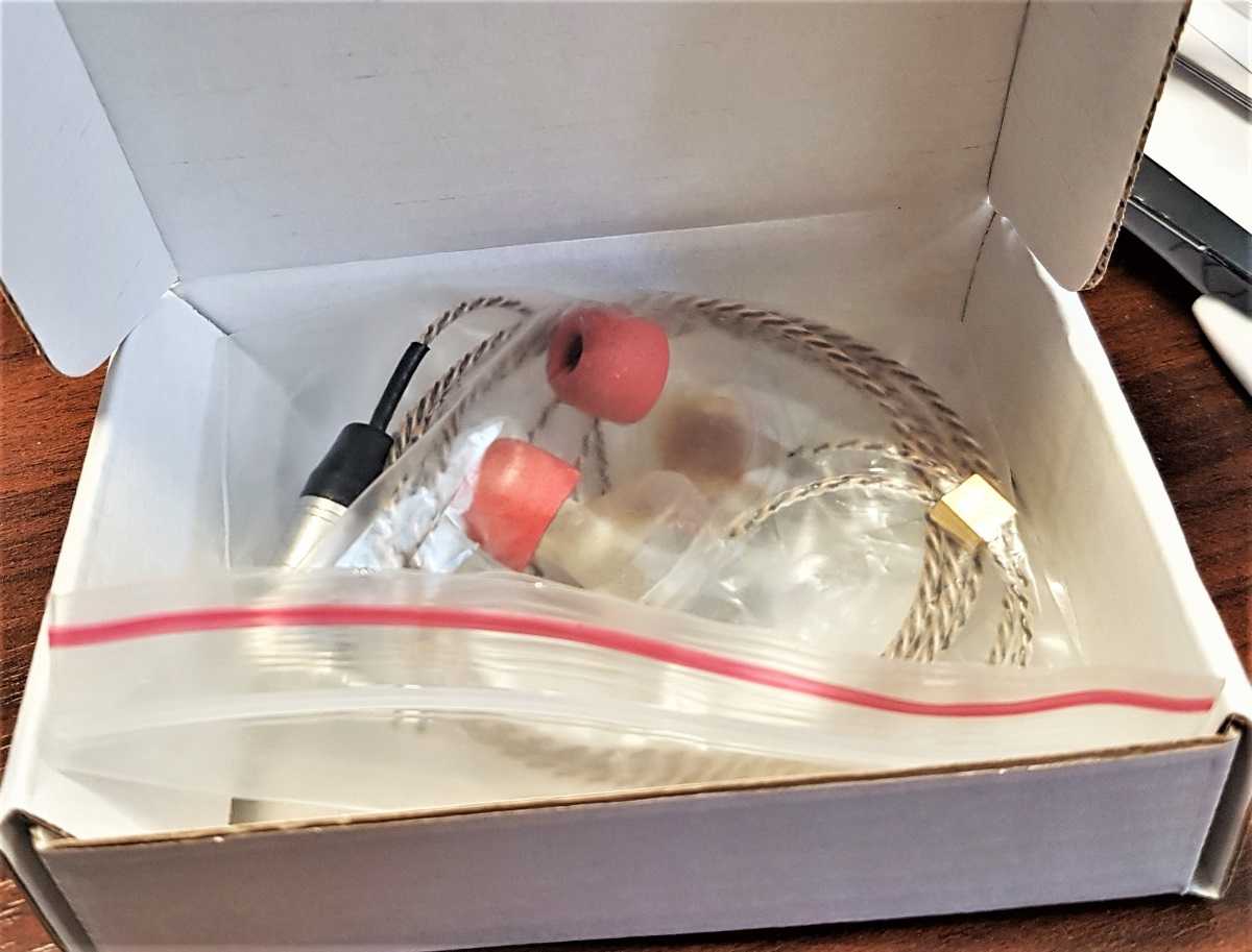 Наушники поставляются в небольшой коробочке из картона. Внутри в пакетике находятся сами наушники, как говорится, «без ансамбля» — без комплектных насадок и прочей мишуры. Все скромно и аскетично, как и в случае с арматурными наушниками линейки MyST Nail. Насадки же можно прикрутить свои или подобрать здесь же, в магазине Майкрофт.