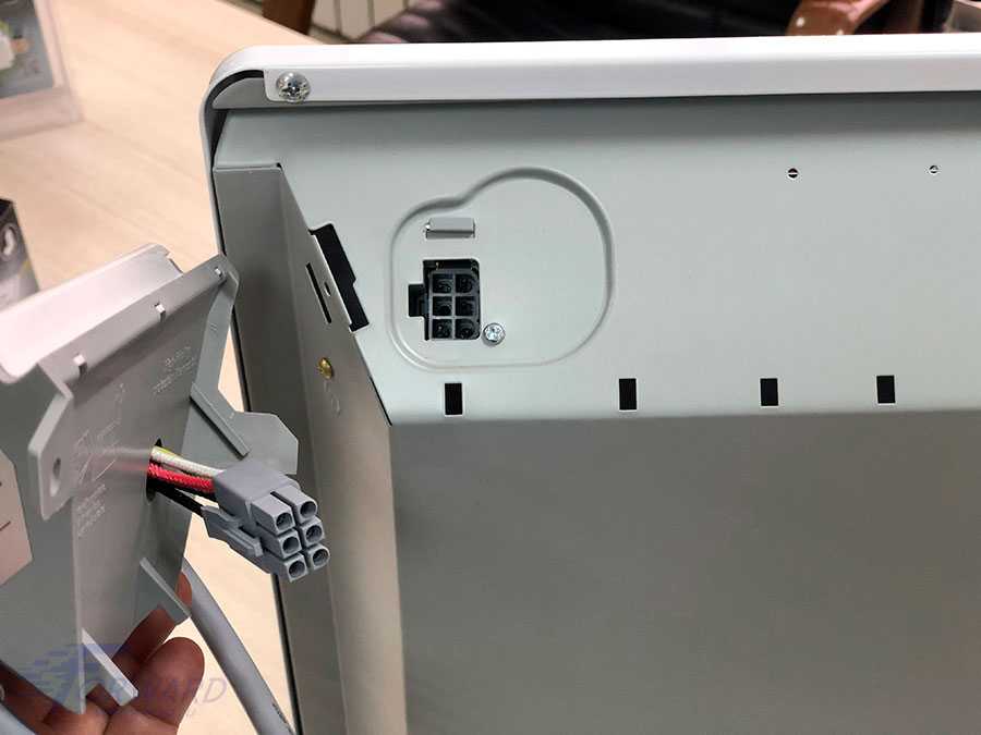 Установка блока управления к модулю происходит через специальный 6-пиновый разъем. При его установке нужно быть немного внимательней, чтобы все необходимые детали попали в нужные отверстия и блок защелкнулся с левой стороны блока управления. Далее можно его закрепить специальным болтом. В целом установка отнимет у вас пол минуты, или даже меньше. Далее мы рассмотрим каждый блок управления, шасси и возможность управлять конвекторов через интернет.