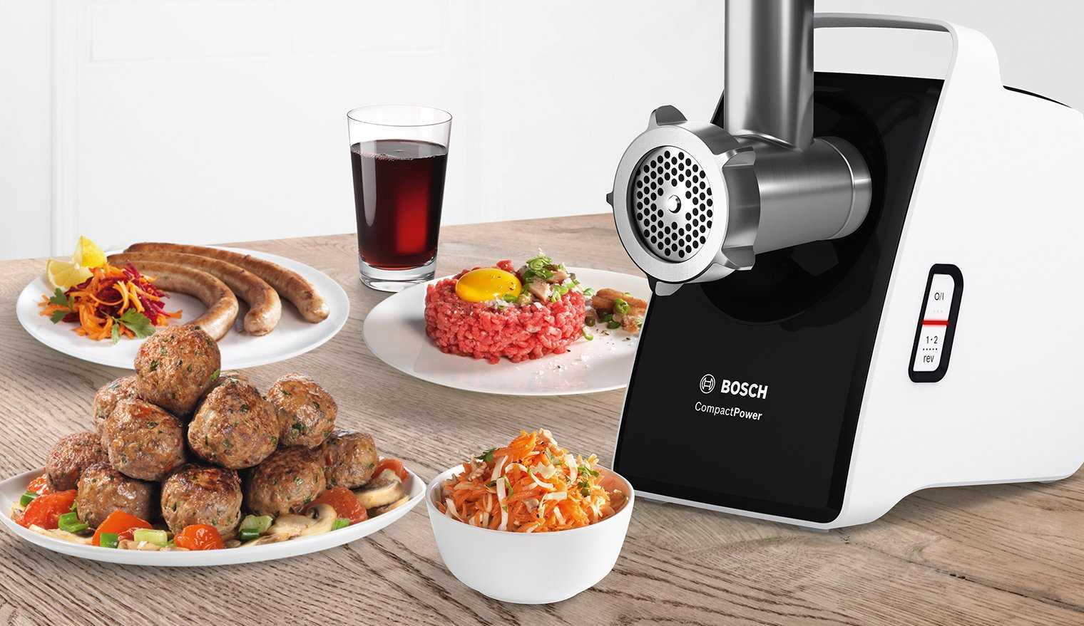Bosch — один из самых знаменитых в мире брендов по производству бытовой техники. Известный девиз фирмы «Лучше лишиться прибыли, чем доверия покупателей» в полной мере относится и к мясорубкам. Продукция Бош отличается надежностью, длительным сроком службы и отменным качеством сборки. Компания занимается выпуском как традиционных, так и многофункциональных электрических измельчителей. Последние оснащены набором дополнительных насадок: