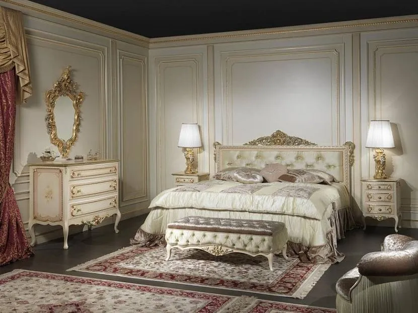 Классический стиль. У спальни нет выбора – она обязана быть роскошной. Такой ее делают благородные тона: ванильный, кремовый, персиковый. Помогает им золото в декоре, мебель из дорогих пород дерева. Белому разрешается присутствовать в минимальных количествах. Роль акцента отводится бирюзовому.