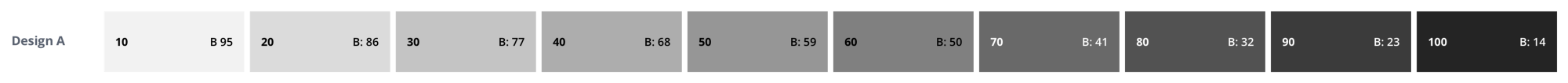 Как показано на этой диаграмме, «простым» решением может быть увеличение значений с использованием равномерного интервала между каждым значением. Я задал яркость 95% для темы-10 и 15% для темы-100. Для каждого шага мы уменьшали яркость на 9% по мере увеличения значений темы.