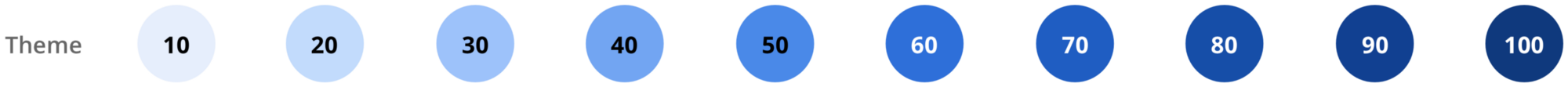 - Начальные и конечные цвета: эти цвета чаще всего используются как акцентные фоновые цвета, либо для добавления визуальной массы элементу интерфейса, как в светлых, так и в тёмных темах. Например, тема-10 (светлая) или тема-100 (темная) могут использоваться в качестве фона для выбранных элементов в выпадающем меню или в строке таблицы.