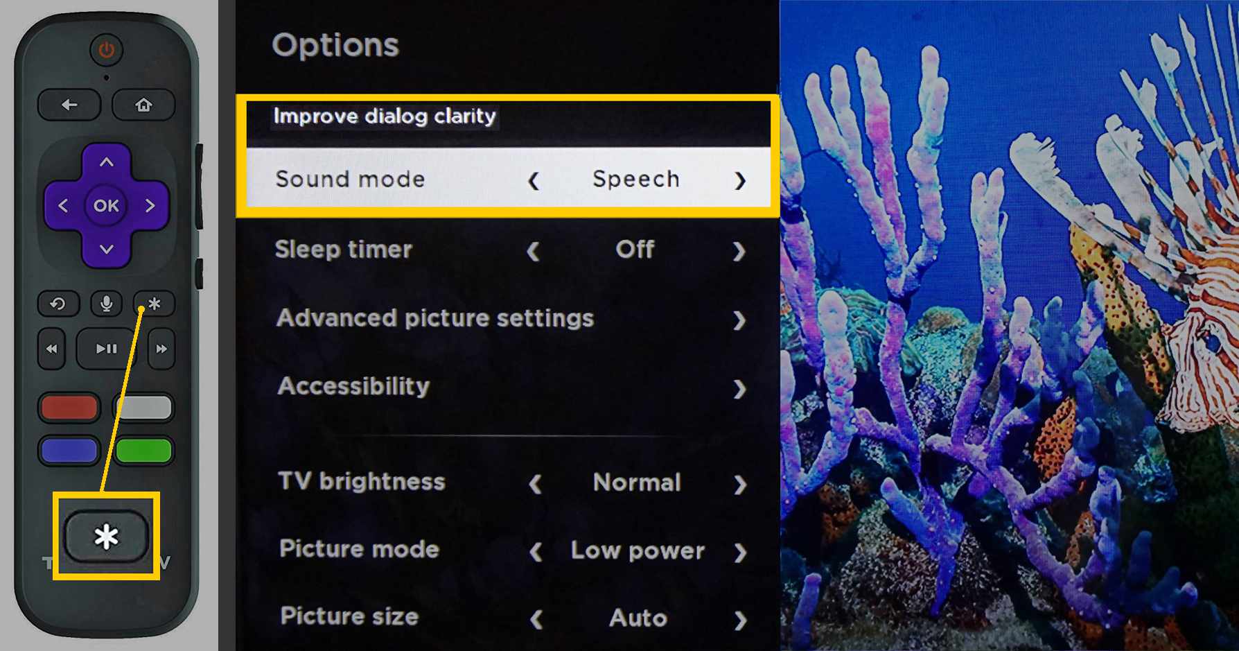 На телевизоре Roku перейдите в Меню параметров > Режим звука > Речь