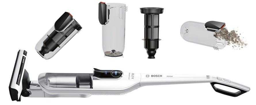 Хорошим беспроводным прибором является немецкий пылесос Bosch BCH 6ATH18. Сила всасывания достигает 350 Вт. Объем пылесборника циклонного типа равен 0,9 л. Устройство может работать непрерывно в течение 40 минут. На подзарядку понадобится 6 часов. Модель оснащена опцией регулировки мощности всасывания и индикатором заполнения пылесборника. Стоимость вертикального пылесоса Бош составляет 8,8 тыс. руб.
