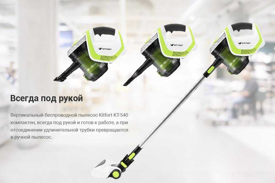 Новой моделью, которая сразу завоевала признание, является пылесос Kitfort KT-536. Устройство отличается хорошей маневренностью, легкостью в управлении, тихой работой, небольшим весом. Мощность модели достигает 300 Вт. Циклонный контейнерный пылесборник имеет вместительность 0,6 л. Вертикальный пылесос Китфорт может работать на протяжении 45 минут, после чего загорится индикатор, указывающий на необходимость подзарядки, на что понадобится до 4 часов. Цена устройства составляет 6,5 тыс. руб.