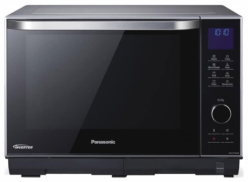 Эта модель имеет и ещё одну интересную функцию. Многие хозяйки знают, как сложно запечь, например, курицу, получив красивую равномерную корочку во всех сторон. Panasonic NN-DS596M решила эту проблему. В ней предусмотрена специальная система Panacrunch: сверху блюдо пропекается за счёт применения гриля, а снизу — за счёт поддона, разогретого при помощи микроволн. Больше нет надобности следить за процессом и переворачивать блюдо несколько раз. Кроме того, конструкция не предусматривает поворотного стола, традиционного для большинства моделей.