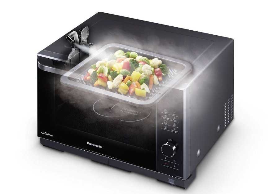 Именно компания Panasonic выпустила первую в мире паровую инверторную печь, причем случилось это достаточно давно. За основу процесса берется традиционное излучение, сопровождающееся паровым увлажнением. Пар — это не просто маркетинговый ход, а реальная польза для любого процесса: подогрева, размораживания, выпечки или приготовления блюд. Пар способствует более равномерному распределению микроволн, а также увлажняет поверхность продуктов, благодаря чему они сохраняют сочность, аромат, естественную структуру и вкусовые качества. Комбинируя пар, СВЧ, гриль и конвекцию, можно расширить свой привычный список блюд, добавив десятки новых.