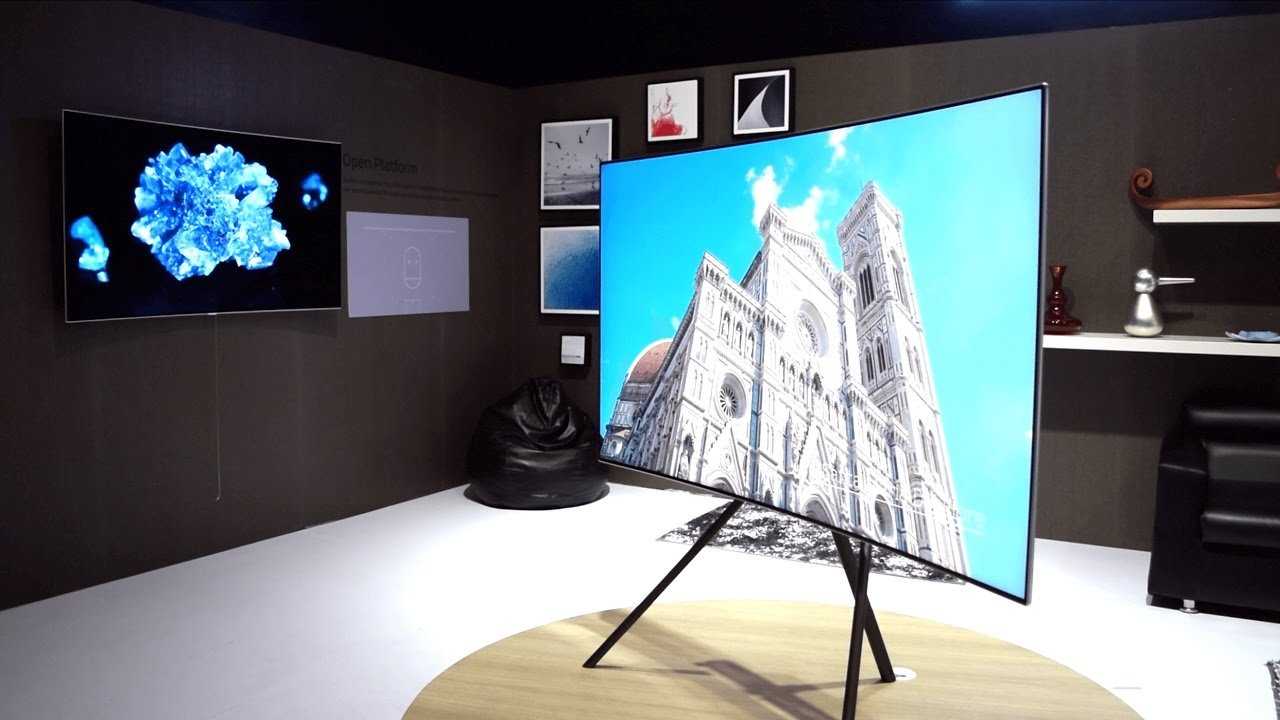 Плоский и почти бескаркасный корпус имеет глубину менее 6 см, что придает изделию высококачественный внешний вид. Стенд с подставкой может быть легко отсоединен в пользу установки телевизора на стену. Подходящий настенный кронштейн VESA 400 x 300 не входит в комплект поставки. Его придется приобретать отдельно.