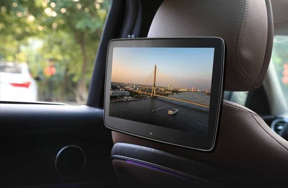 - Экран, встроенный в подголовник. Таким способом устанавливают устройства с маленькой диагональю для просмотра видео каждым пассажиром индивидуально.