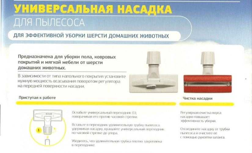 Комплектация пылесоса для уборки шерсти животных должна включать:
