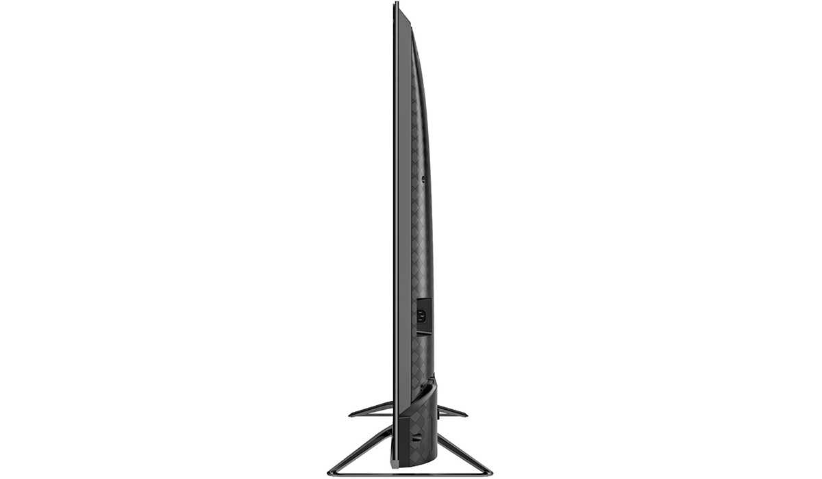 В толщину корпус Hisense 55U8QF сравнительно большой – до 8 см в нижней части. Вызвано это использованием полноценной тыловой подсветки, которая заметно увеличивает габариты по сравнению с более дешевой краевой.