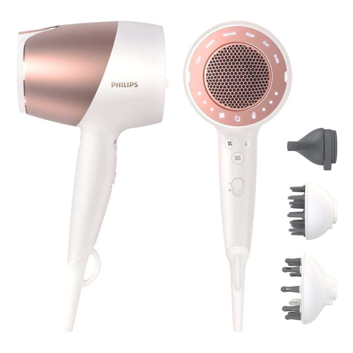 Фен для кудрявых волос Philips Prestige с технологией SenseIQ определяет температуру волос и регулирует нагрев более 12 000 раз за сеанс, чтобы избежать перегрева — все ради здоровья и шелковистости ваших волос. Технология SenseIQ для сушки с элементами персонализации. ОПРЕДЕЛЯЕТ. Цифровой ИК-датчик фена постоянно отслеживает температуру ваших волос для персональной защиты. АДАПТИРУЕТСЯ. Интеллектуальный микропроцессор анализирует данные с датчика и подстраивает температуру более 12 000 раз за сеанс сушки во избежание перегрева. ЗАБОТИТСЯ. Наша адаптивная технология и датчики защищают волосы во время сушки, сохраняя до 95 % естественной влаги в ваших волосах. Подарите своим волосам уход, которого они заслуживают. Уникальный цифровой пользовательский интерфейс, управлять которым можно одним пальцем. Светодиодная индикация поможет с навигацией во время сушки. А отдельная кнопка холодного обдува позволит легко придать волосам нужную укладку.