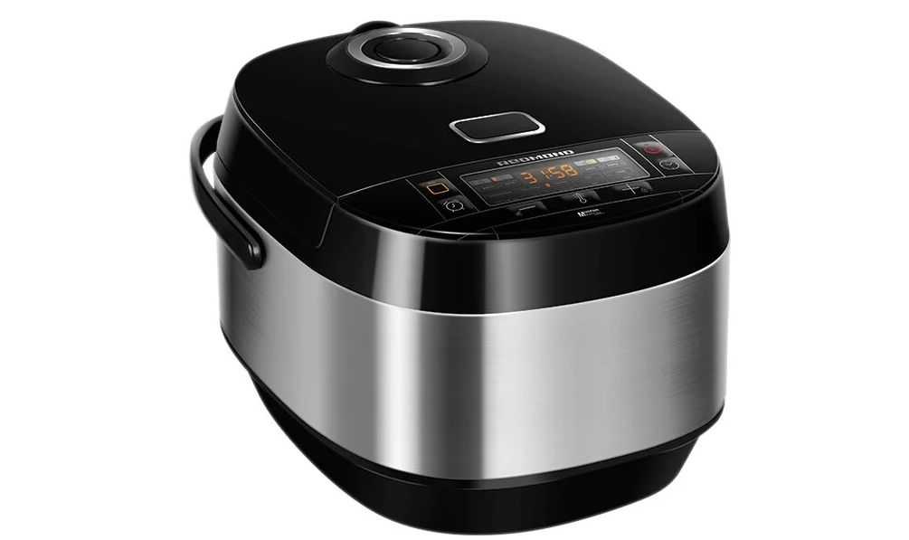 Открывает наш обзор мультиварка с 3-D нагревом Redmond RMC-IHM303, которая работает на основе индукционной технологии. Это значит, что чаша объемом 5 л моментально нагревается. Антипригарное покрытие позволяет не использовать растительное или сливочное масло во время приготовления пищи. Блюда не прилипают к стенкам, имеют меньшую калорийность. В арсенале устройства есть 15 автоматических программ, которые помогают сделать домашний йогурт, молочную кашу на завтрак, плов на обед или тушеные овощи на ужин. При этом кулинарный процесс не нужно контролировать, достаточно положить ингредиенты и нажать соответствующую клавишу.