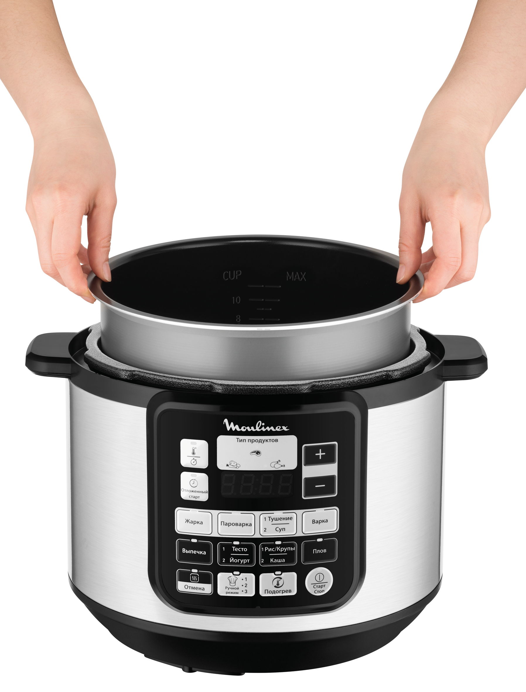 Вторая группа – мультиварки-скороварки, которые позволяют выбирать наличие или отсутствие давления при готовке (MOULINEX Minut’cook CE400032) и даже регулировать его уровень (OURSSON MP5005PSD). У этих моделей съемные тяжелые крышки, напоминающие скороварки прошлых лет, но функциональные возможности при этом как у современных мультиварок.