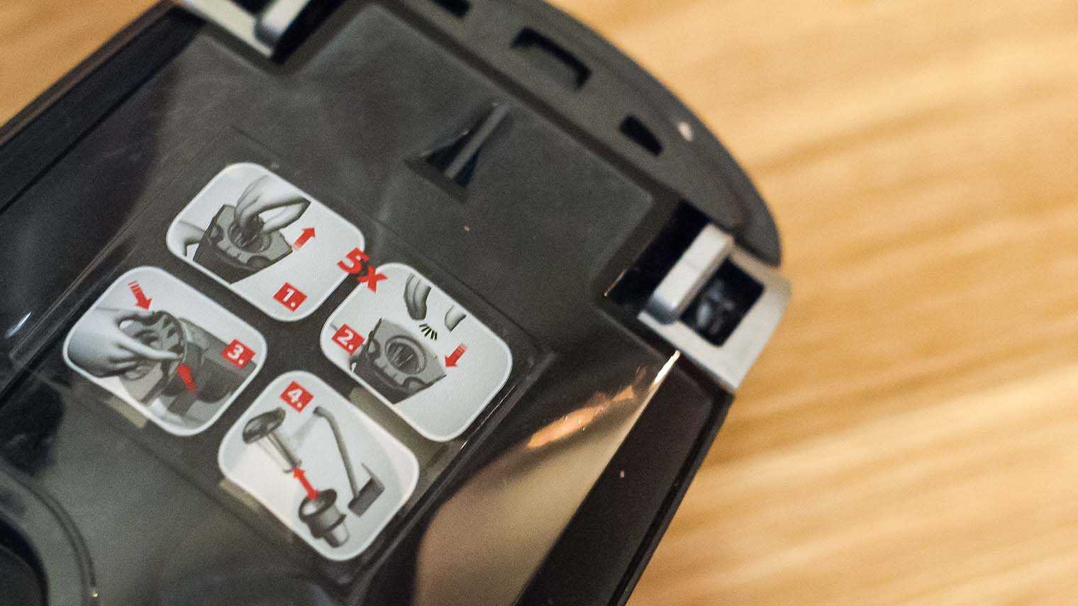 Рекомендуется быстрая очистка тонкого фильтра после каждой уборки: для этого нужно несколько раз потянуть за специальную ручку. Срабатывает пружинный механизм — и мусор, осевший на фильтре, попадает в контейнер. Оба фильтра можно промывать, сушить и снова устанавливать в пылесос. По инструкции делать это следует после 5-6 использований пылесоса. О необходимости очистки подскажет и световой индикатор.