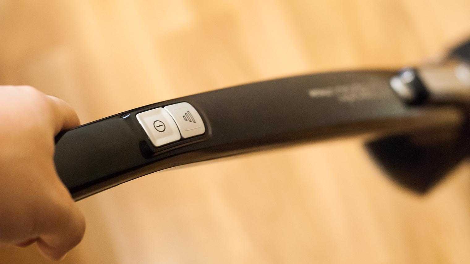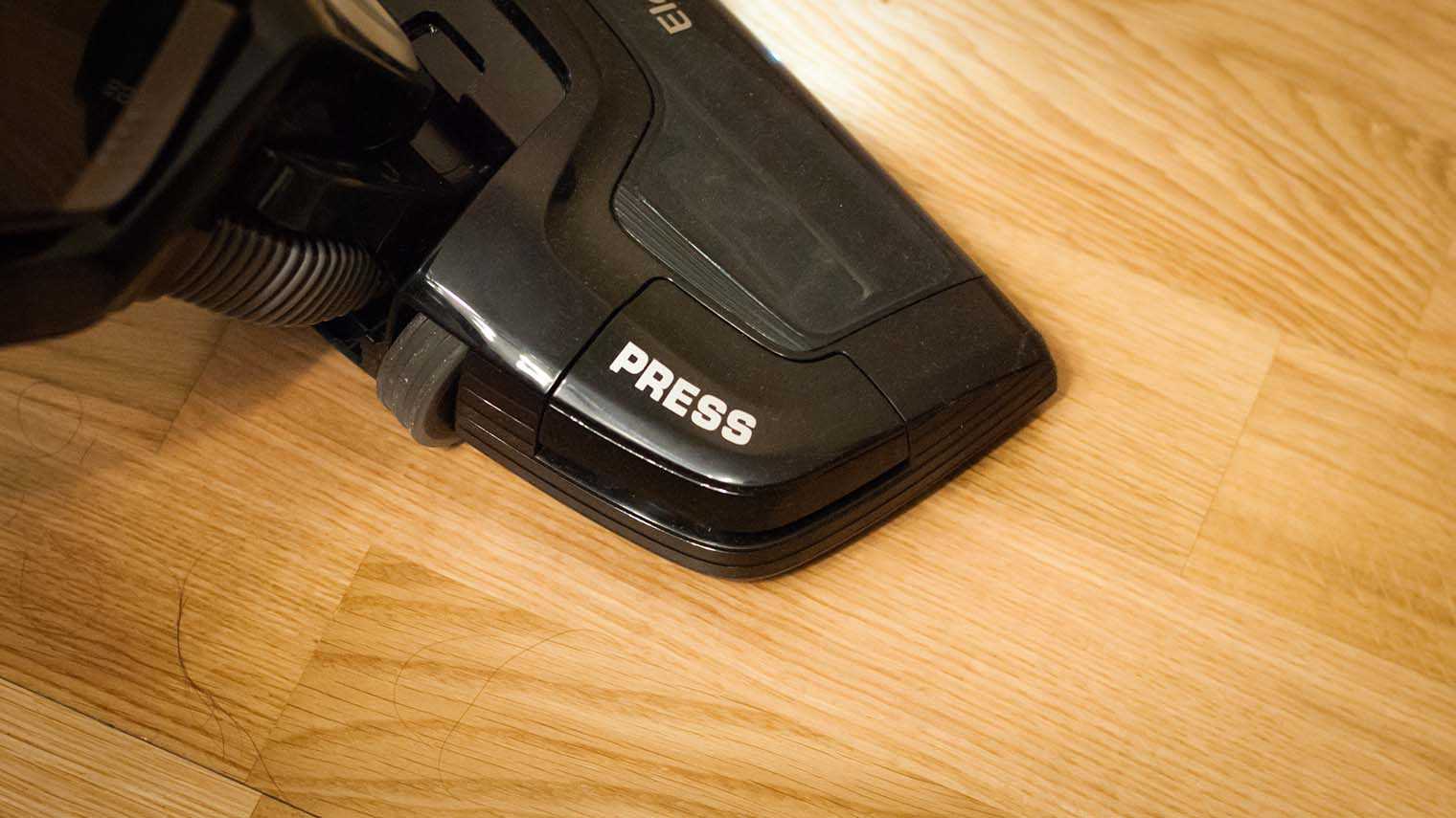 Встроенная электро-щетка подойдет и для полов, и для ковров. Время от времени ее нужно чистить: наматываются волосы и всякая грязь. Благо, она самоочищающаяся, и нужно просто нажать на педаль «PRESS», чтобы она сделала все сама. Технология называется BrushRollClean.