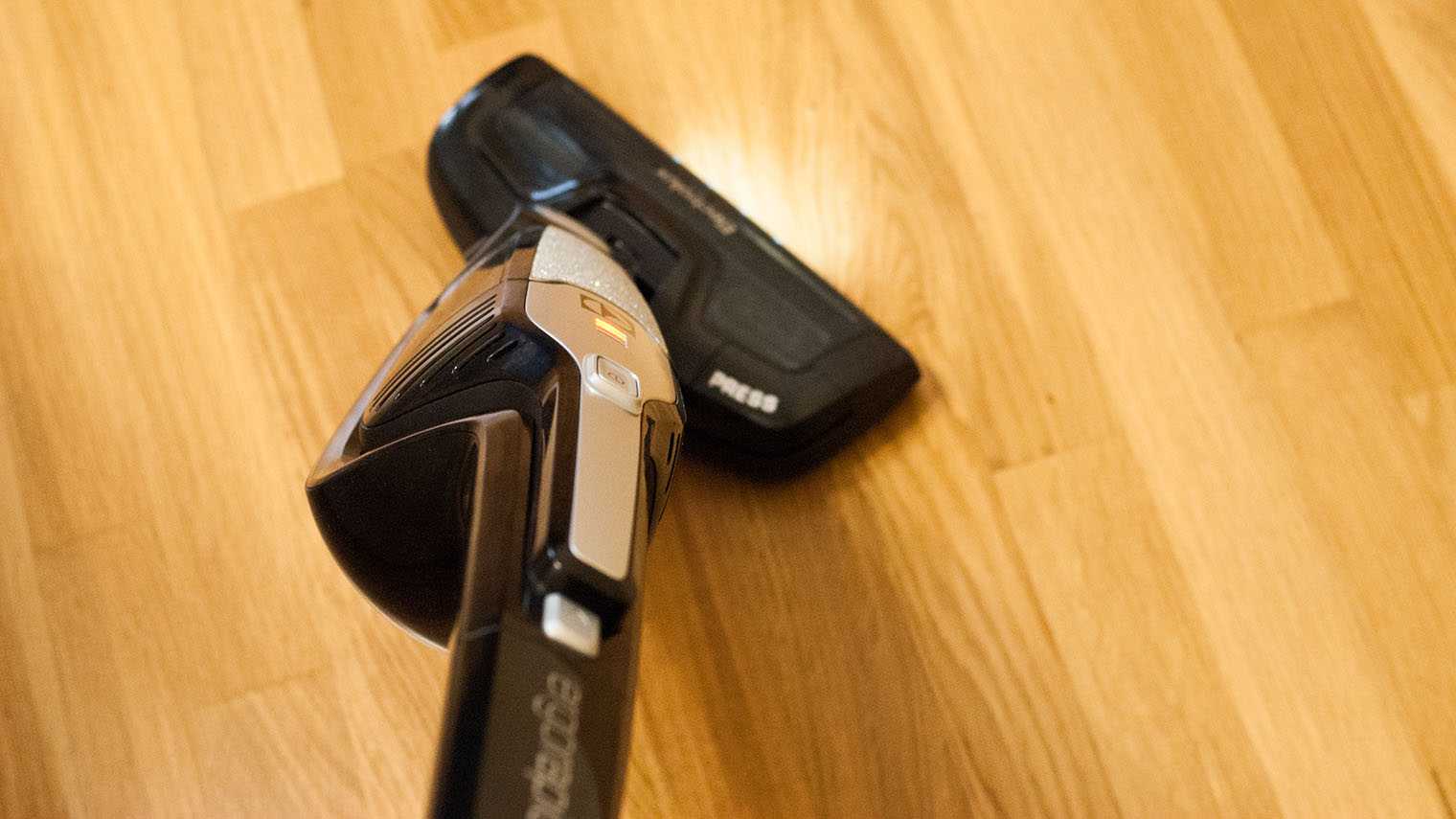 Тяга мощная, любой мусор убирается с первого раза, что похвально для «компакта». Силу можно регулировать, выбирая между экономным режимом и режимом максимальной скорости работы двигателя.