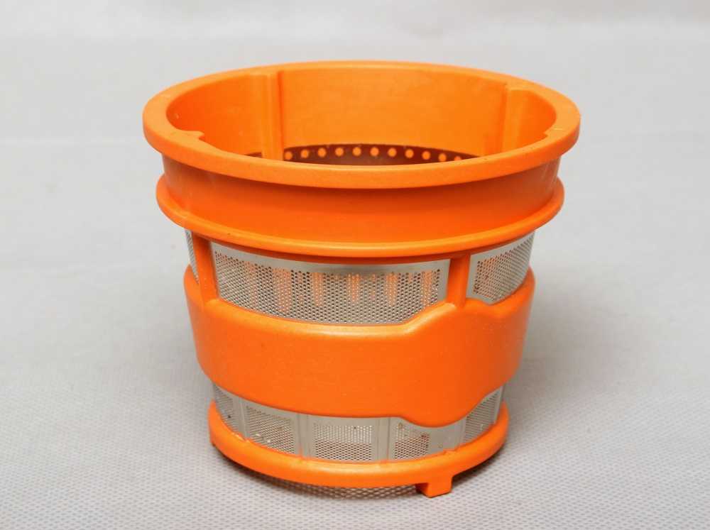 Кроме того, несколько отличается внутренняя конструкция. Если у всех соковыжималок там три принадлежности – шнек, сетка и держатель фильтра, то здесь он отсутствует.