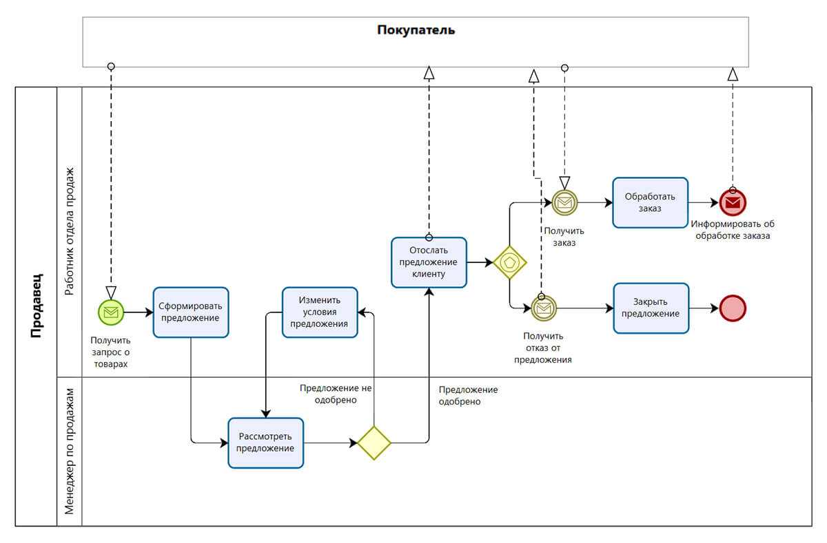 Моделируем бизнес-процесс, используя все перечисленные сведенья.