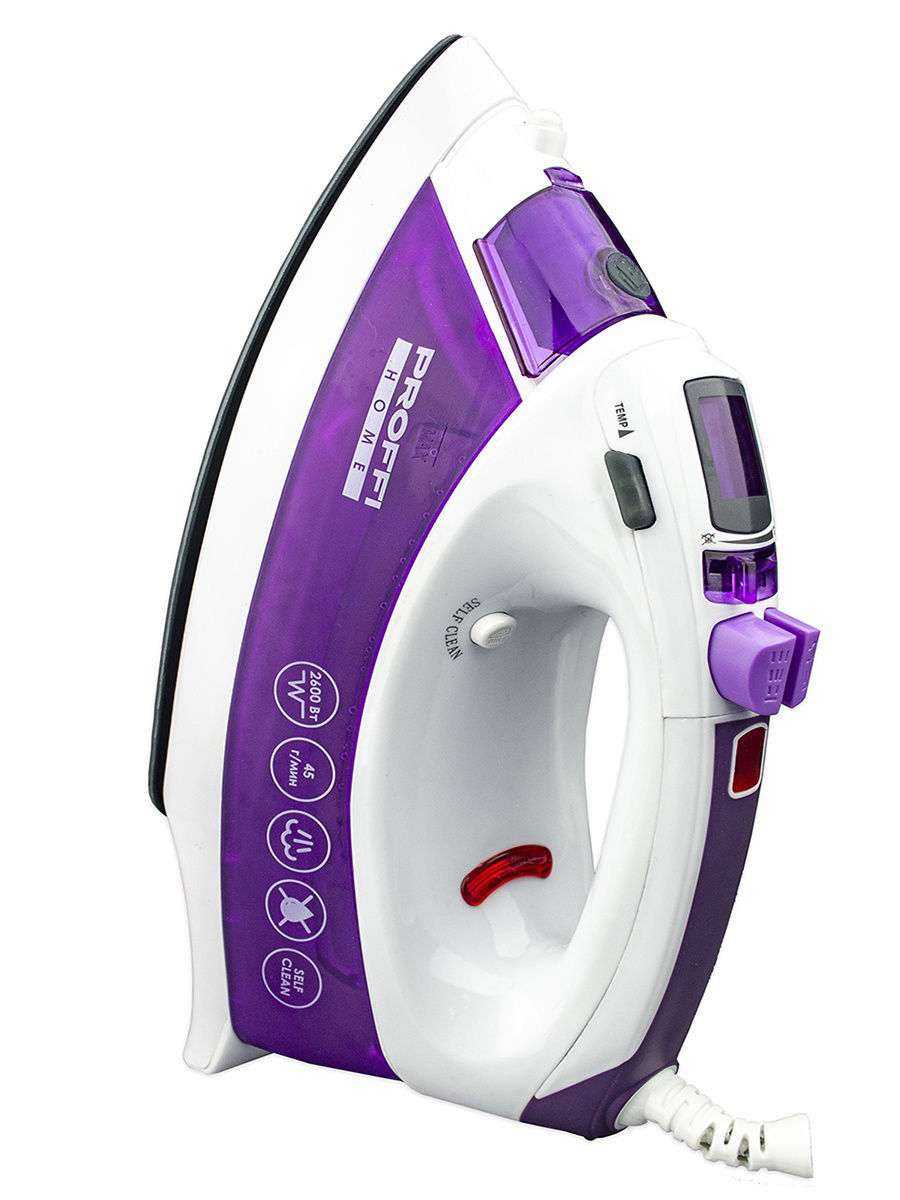 Утюг паровой PROFFI PH8820 удобен в эксплуатации и легко скользит по ткани, благодаря керамической подошве. Этот прибор мощностью 2600 Вт без особого труда выгладит даже пересушенную одежду благодаря подаче пара 4 5г/мин. В устройстве имеется функция подачи пара, которая регулируется посредством специального переключателя, что делает процесс глажки намного быстрее и удобнее. Также утюг оснащен и устройством распыления воды. Плюсом утюга является то, что в нем есть вертикальное отпаривание, которое позволит выгладить одежду, не снимая ее с вешалки. Этот метод также применяется для деликатных легких тканей и едва мятых вещей из шерсти.