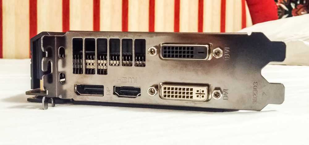 На интерфейсной панели видеокарты расположен набор портов на любой вкус, а именно:
