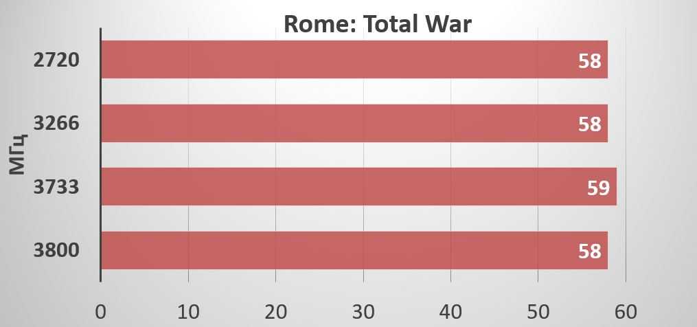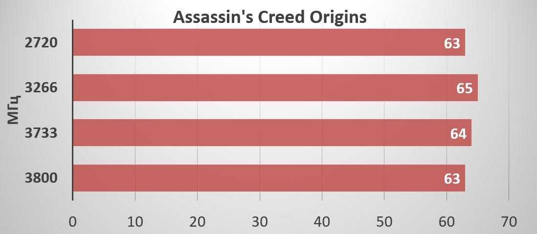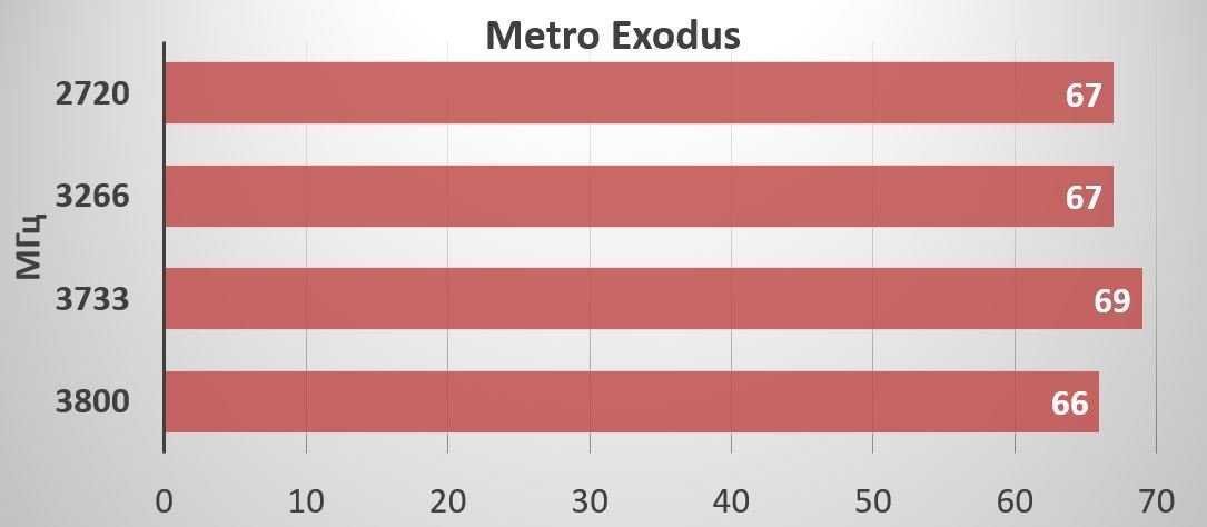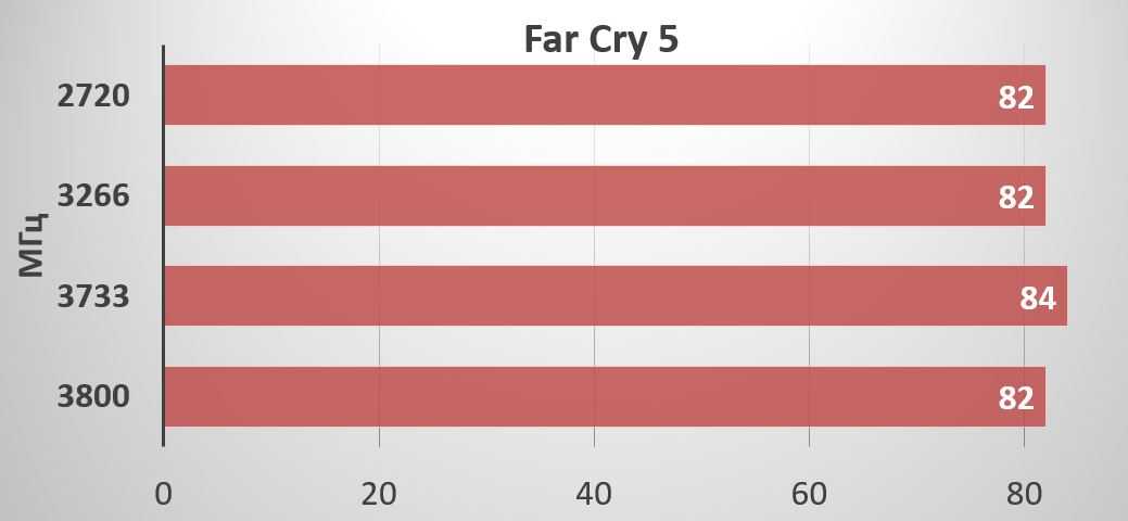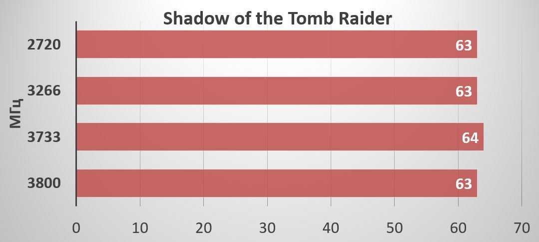 В игровых тестах увеличение частоты оперативной памяти также не оказывает в нашем случае значительного влияния на прибавку FPS. Разница укладывается в погрешность измерений: 2-3 кадра в секунду. Можно только вспоминать о значительной прибавке производительности в играх – до 20% при разгоне памяти на Ryzen первого поколения.