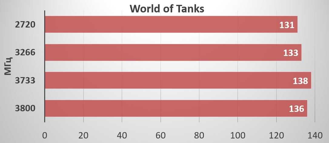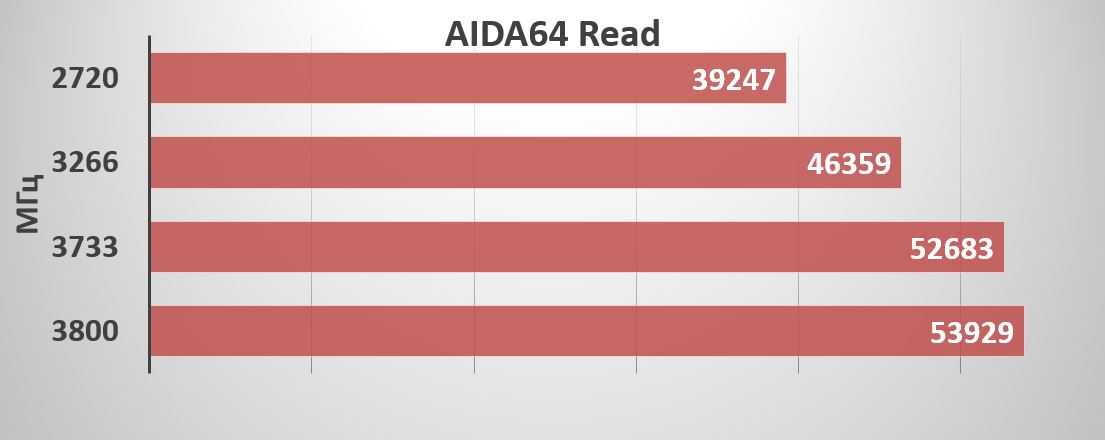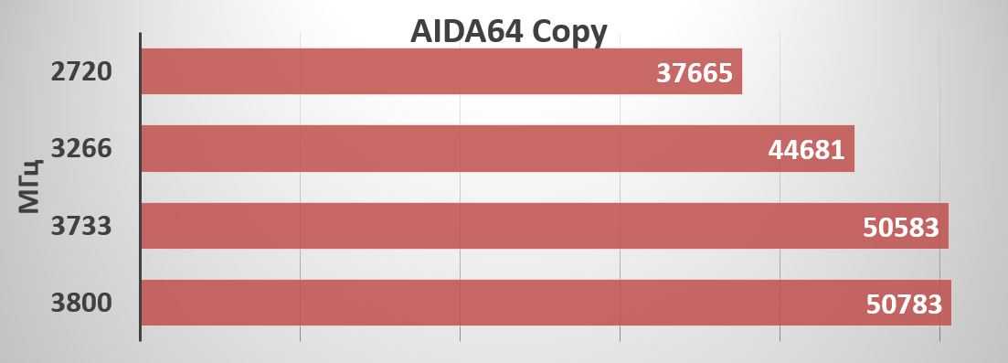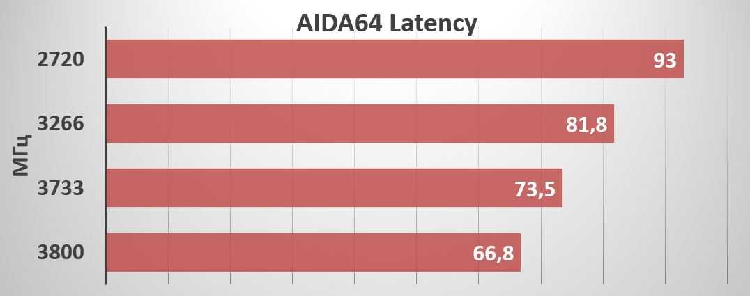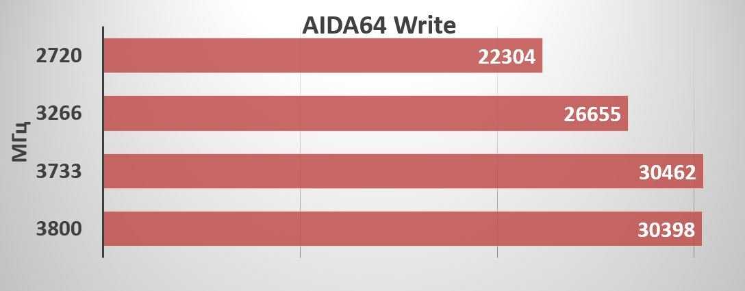 При сохранении одинаковых таймингов мы будем понижать частоту оперативной памяти: 3800, 3733, 3266, 2720 МГц.
