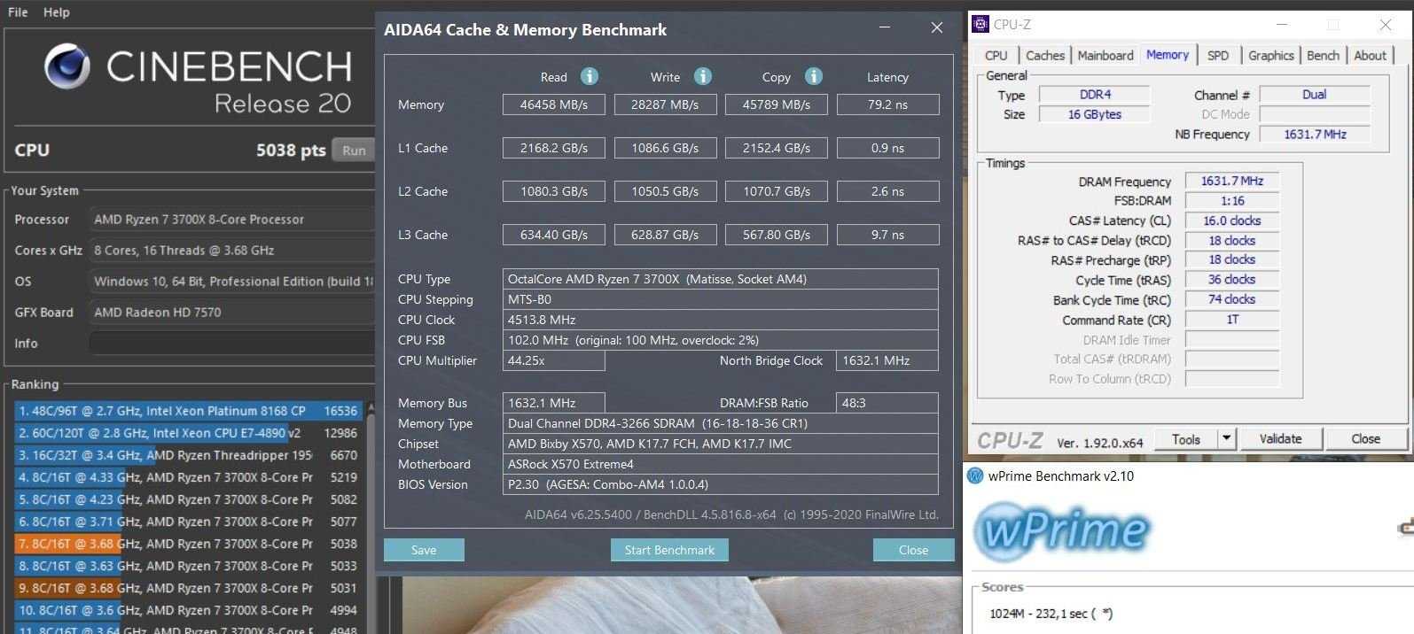 CPU: AMD Ryzen 7 3700XRAM: G.Skill Trident Z DDR4 DIMM 3600MHz PC4-28800 CL17 (DOCP Profile)