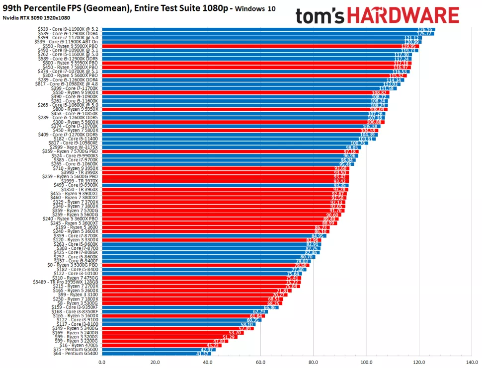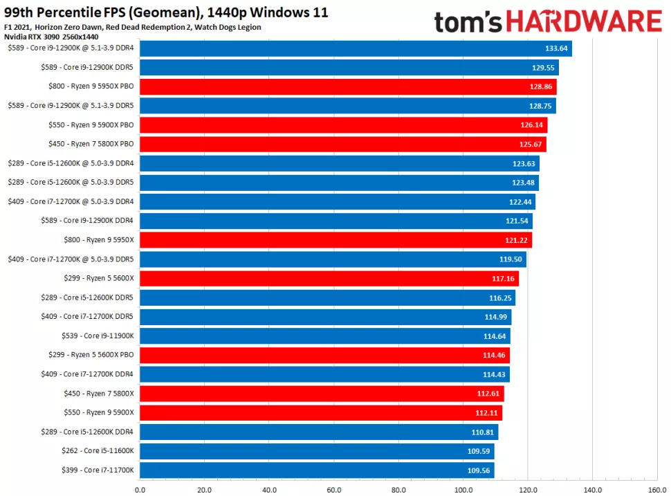 Как вы можете видеть, чипы Intel Alder Lake работают быстрее, чем процессоры AMD Zen 3 на базе Ryzen 5000. Core i9-12900K является самым быстрым игровым чипом на планете