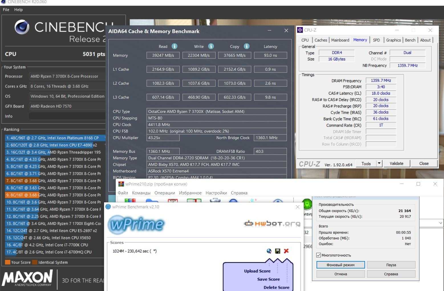 Конфиг 1:CPU: AMD Ryzen 7 2700XRAM: G.Skill Trident Z DDR4 DIMM 3600MHz PC4-28800 CL17 @ 3400CL16