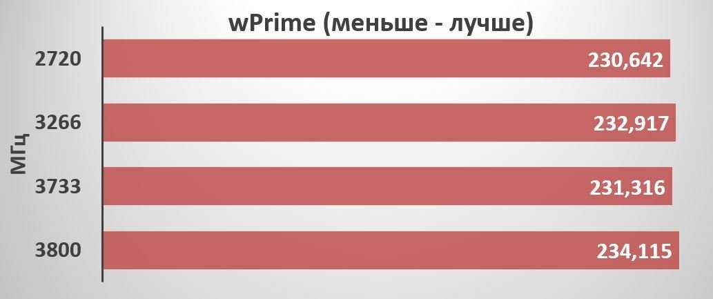 Еще одна утилита – wPrime, демонстрирует свою независимость от частоты оперативной памяти.