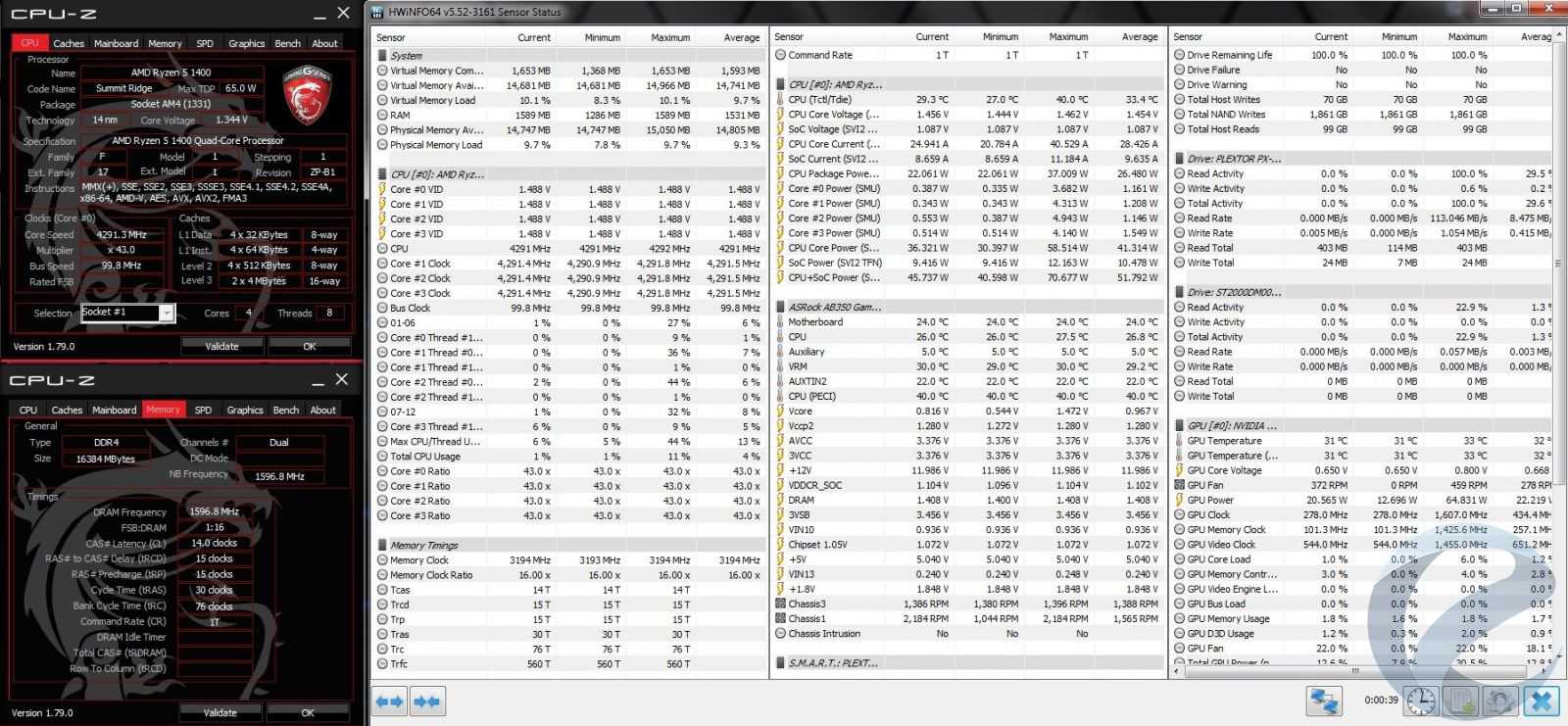 Вернемся к Ryzen 5 1400. На заводских настройках в однопоточных задачах частота ядра,выполняющего операции, достигала 3450 МГц (3400 МГц + 50 МГц XFR).