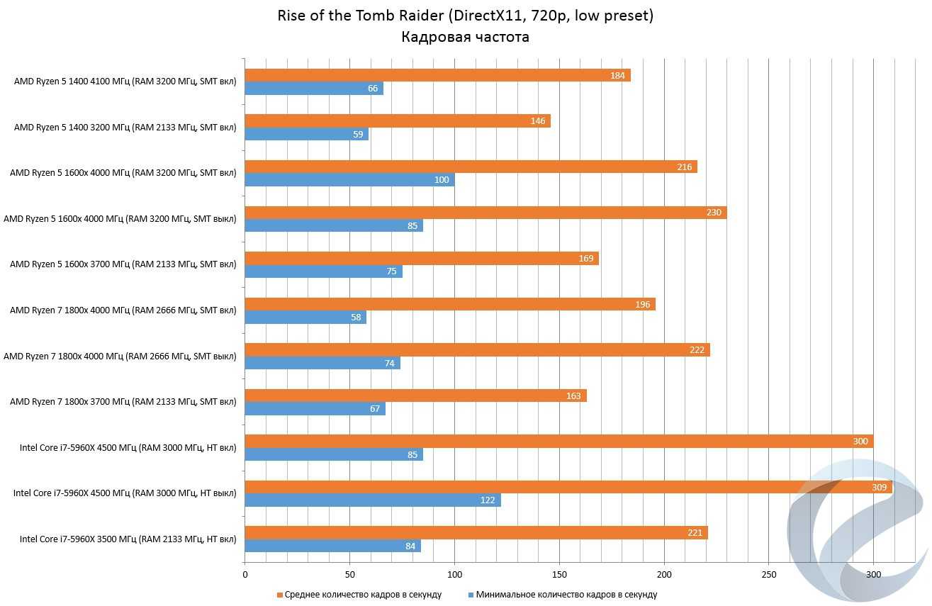 Удивительно, но факт — от игры к игре первенство, то переходило из рук в руки, то мы наблюдали практический паритет, небольшую разницу которого можно списать на 100 МГц разницы в частотах процессоров. Как мы писали ранее, на стороне Ryzen 5 1400- отсутствие обмена данными между CCX (что уменьшает задержки, необходимые на передачу информации), на стороне 1500Х — увеличенный объем кэша. Чтобы более детально изучить данный вопрос, необходимо провести больший анализ игровой производительности, чем, вероятнее всего, мы озадачимся в будущем.