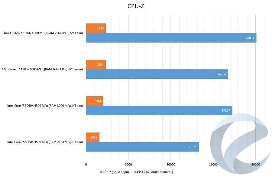 Скачок числа выполняемых операций в секунду (IPC) позволяет при одноядерной нагрузке процессорам Ryzen выглядеть достойно, технология SMT — достичь высокого уровня производительности в многопоточных операциях. Всё это сопровождается как невысоким уровнем потребления по сравнению с Intel HEDT, так и приемлемыми температурами.