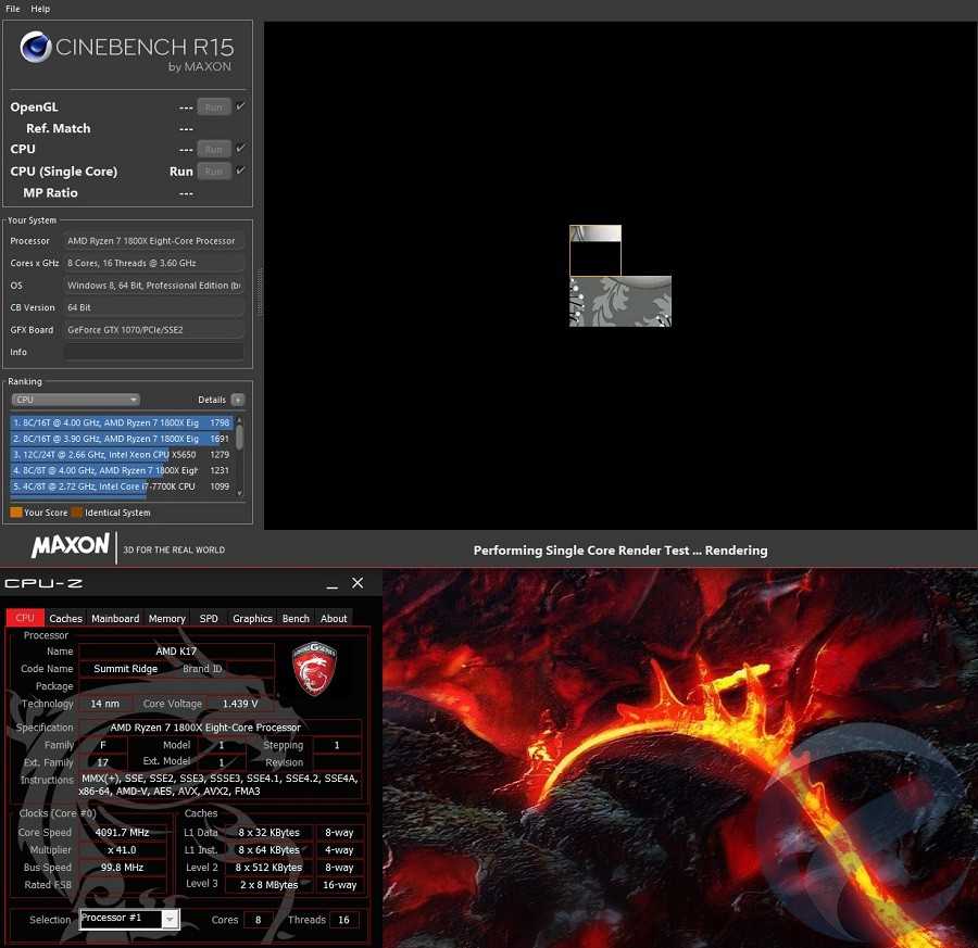 Тестирование производилось с использованием материнской платы Asus Crosshair VI Hero AM4+, с 16 Гб ОЗУ DDR4 со скоростью 2400 транзакций в секунду и видеокартой Nvidia GTX 1080. При запуске требовательных игр AMD Ryzen 7 1800X хорошо себя проявил, отставая всего на 1-2fps в некоторых местах.