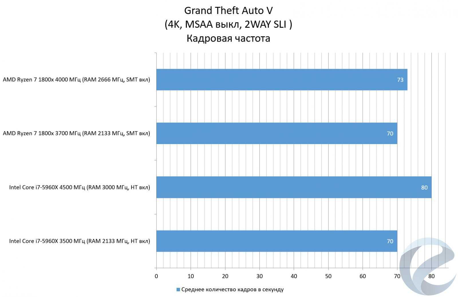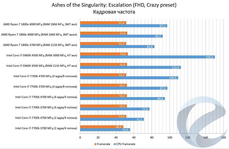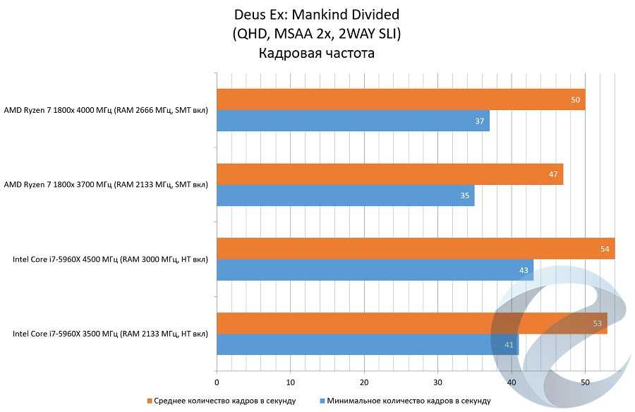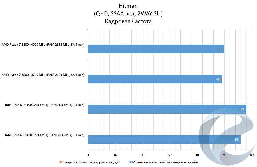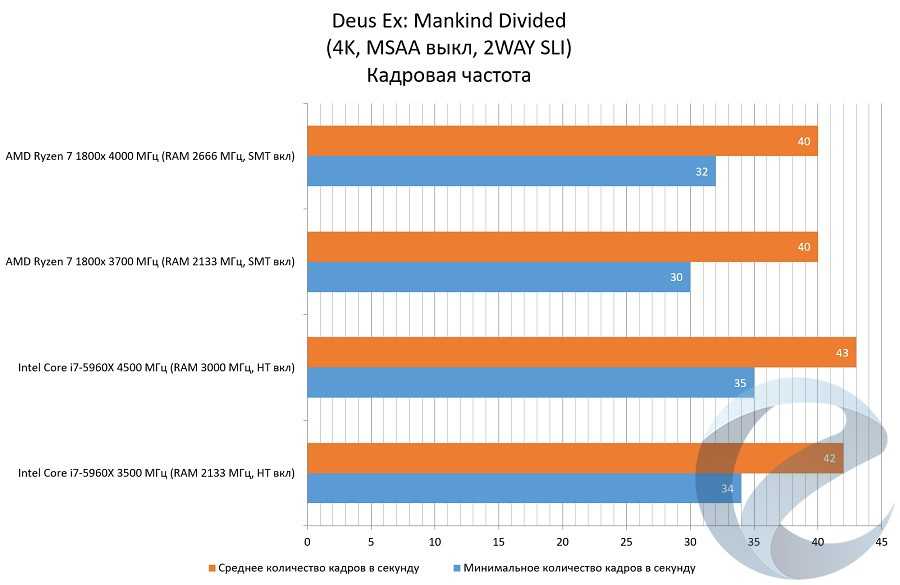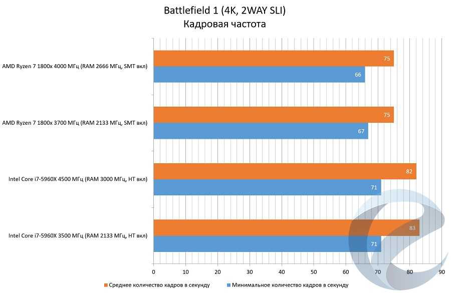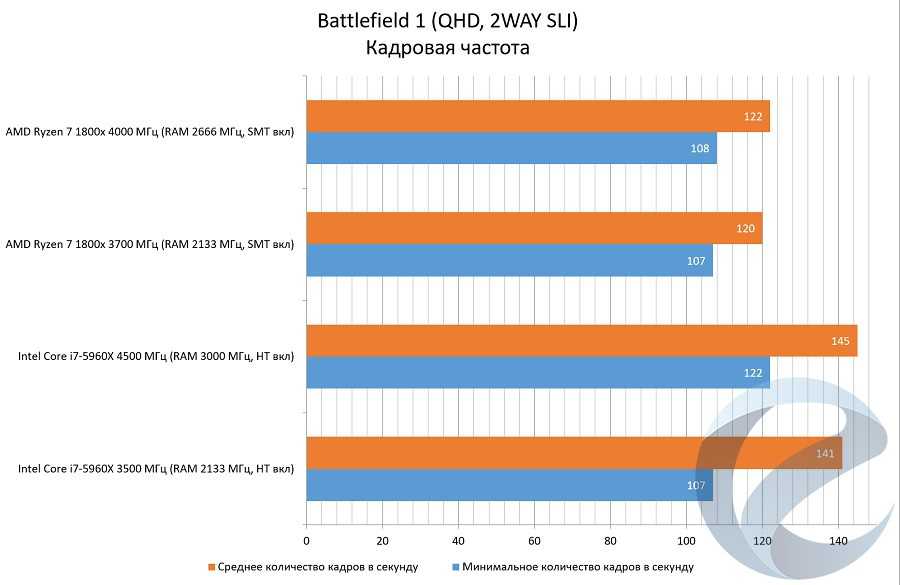 С помощью программыFRAFS Bench Viewer для i7-5960x (4500 МГц) и 1800x (4000 МГц) были построены графики Framerate и Frametime.