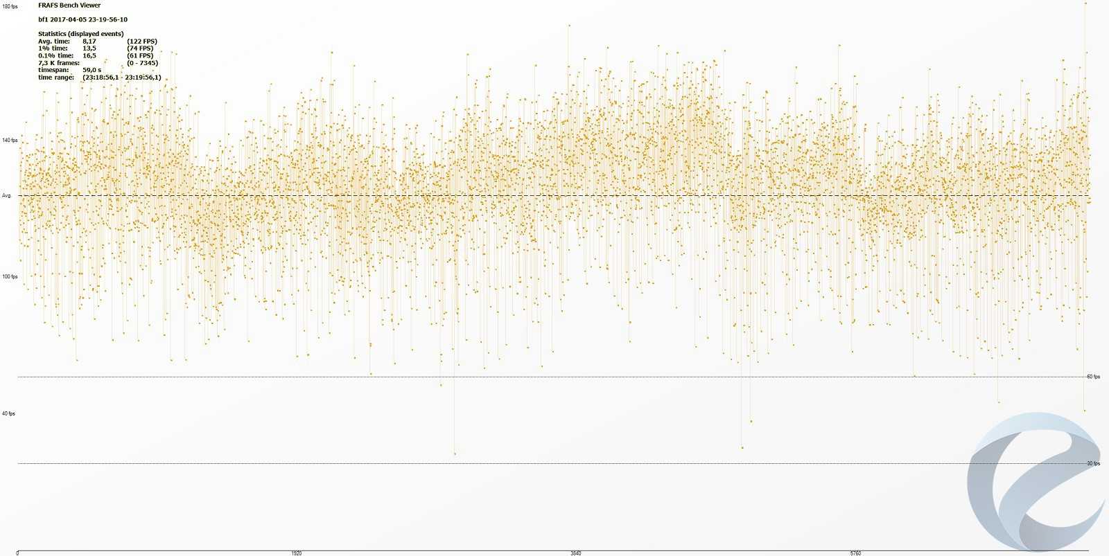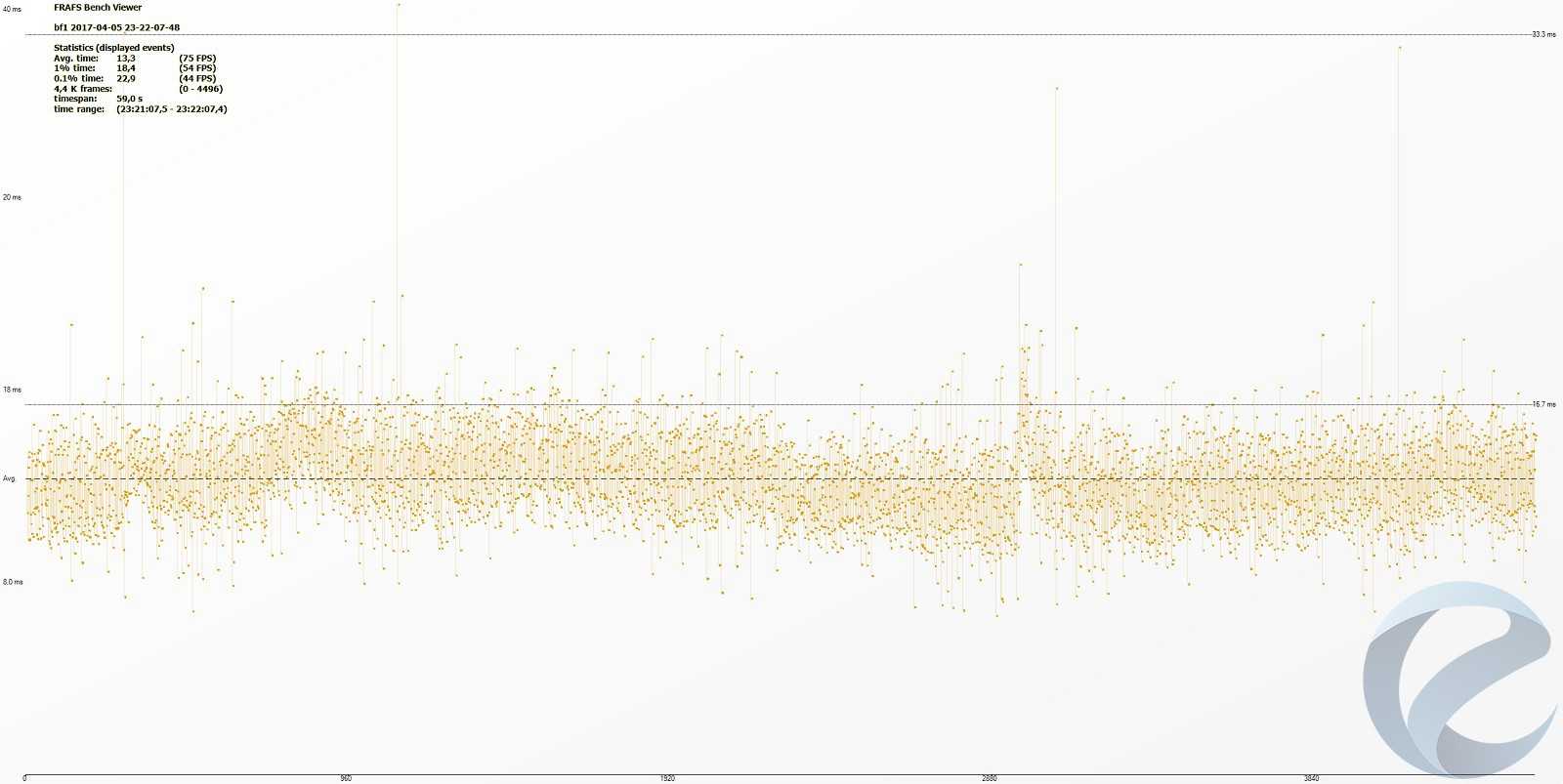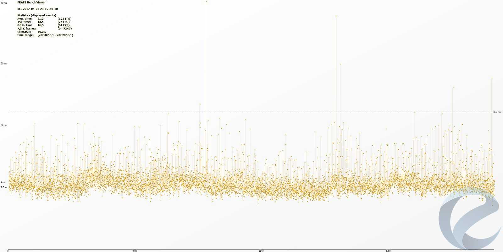 С помощью программыFRAFS Bench Viewer для i7-5960x (4500 МГц) и 1800x (4000 МГц) были построены графики Framerate и Frametime.