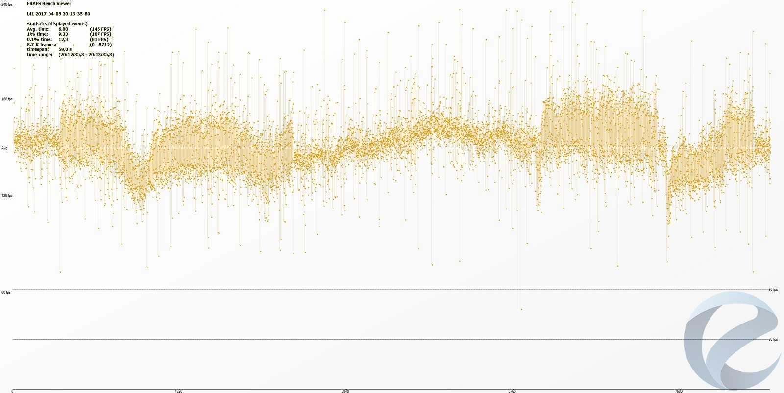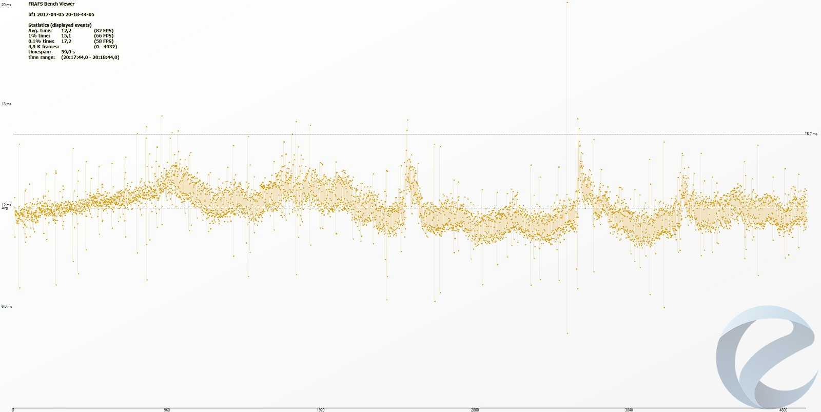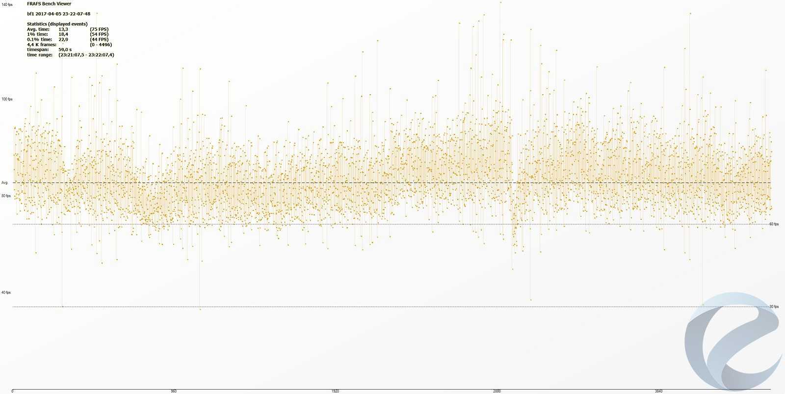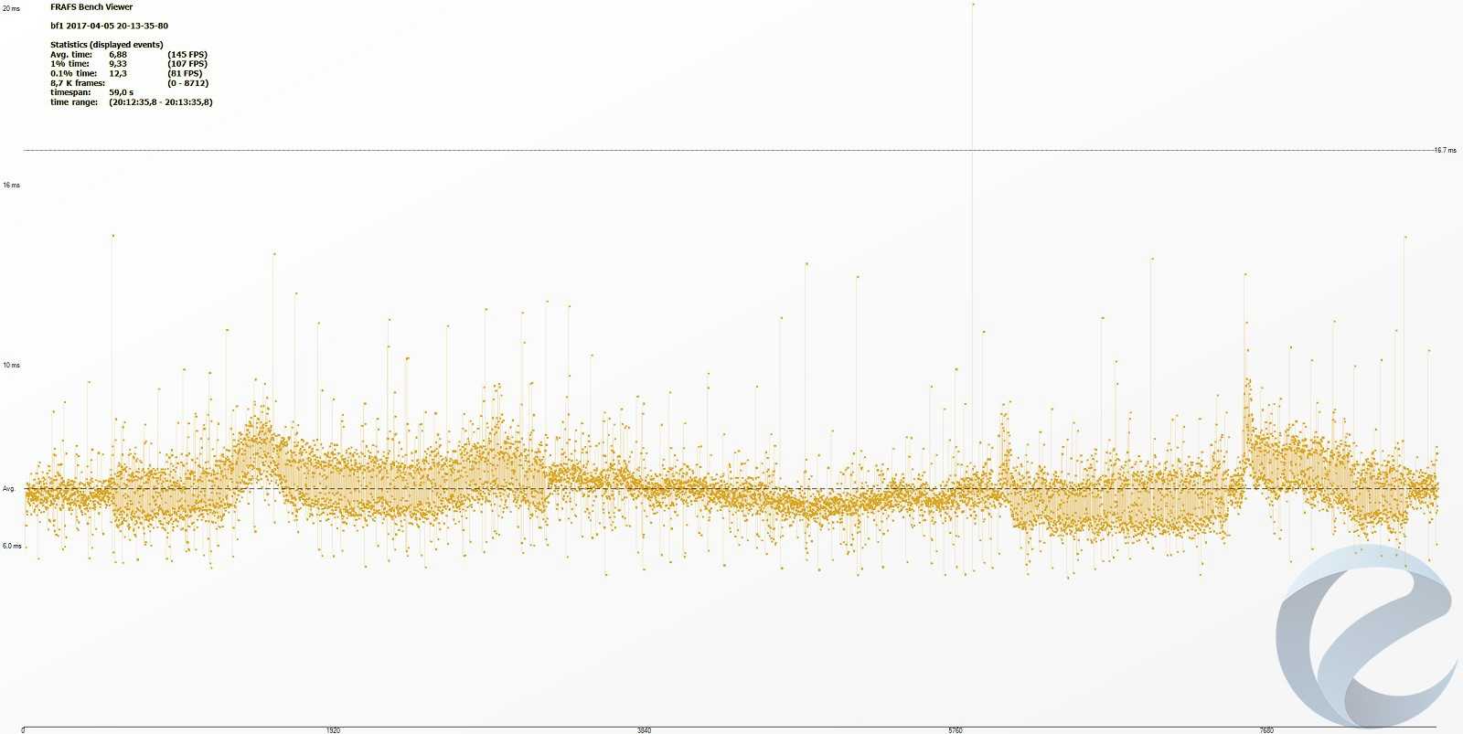 С помощью программыFRAFS Bench Viewer для i7-5960x (4500 МГц) и 1800x (4000 МГц) были построены графики Framerate и Frametime.